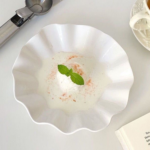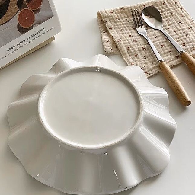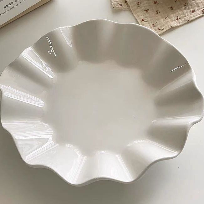 陶瓷荷叶 盘子 汤盘菜盘异形创意家用水果盘餐具不规则 纯白网红
