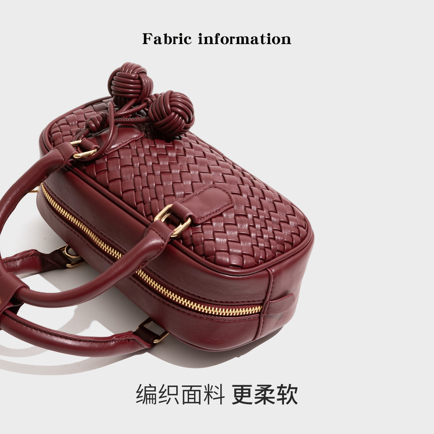 格调studio复古轻奢酒红色软皮女包2025年新款手提包高级感单肩包