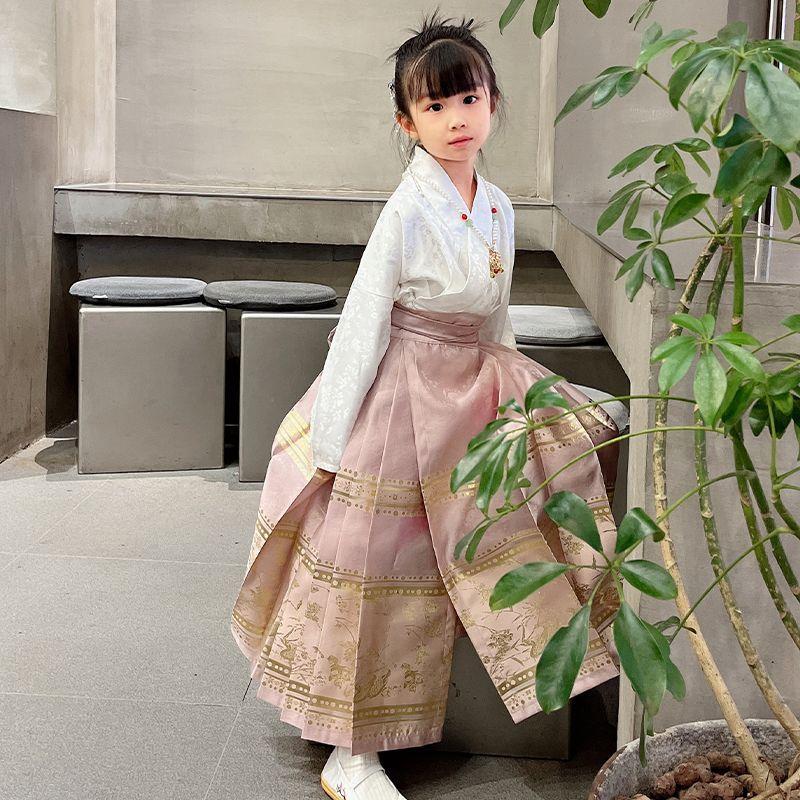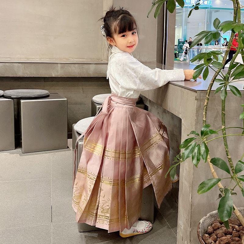马面裙女童秋季套装洋气公主裙儿童古风汉服裙子半身裙织金两件套
