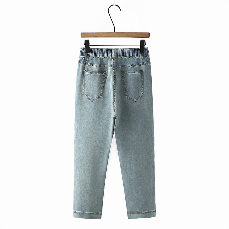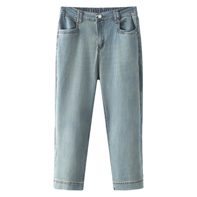 胖mm显瘦夏季薄款牛仔裤大码女裤梨形身材半松紧腰弹力八分直筒裤
