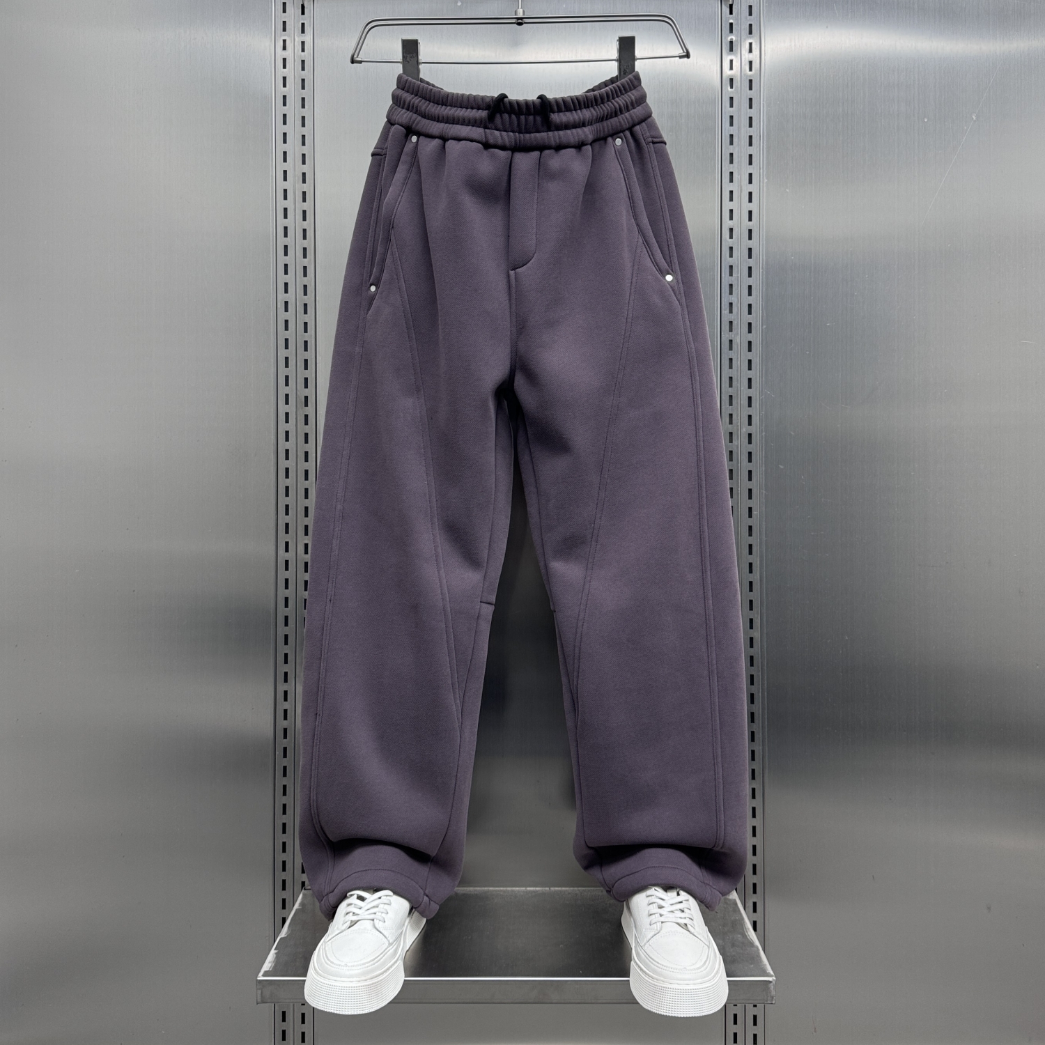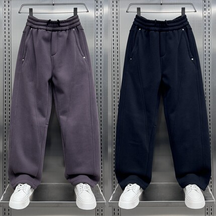 秋冬新款加绒加厚男士潮牌纯色弯刀裤青年宽松休闲裤痞帅哈伦裤男