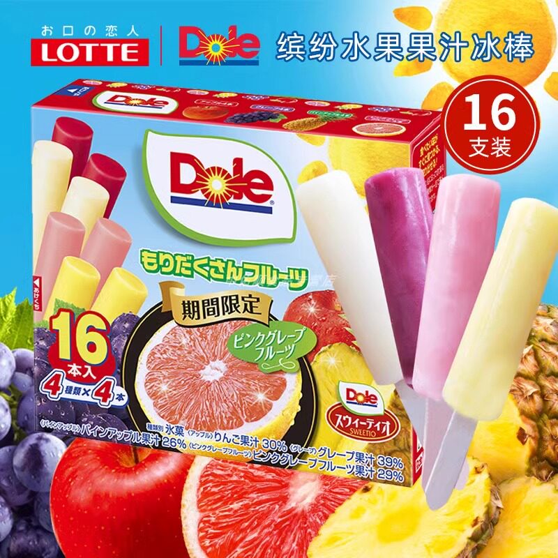 日本进口乐天Dole都乐水果味棒冰盒装冰激凌葡萄棒冰菠萝味冰淇淋