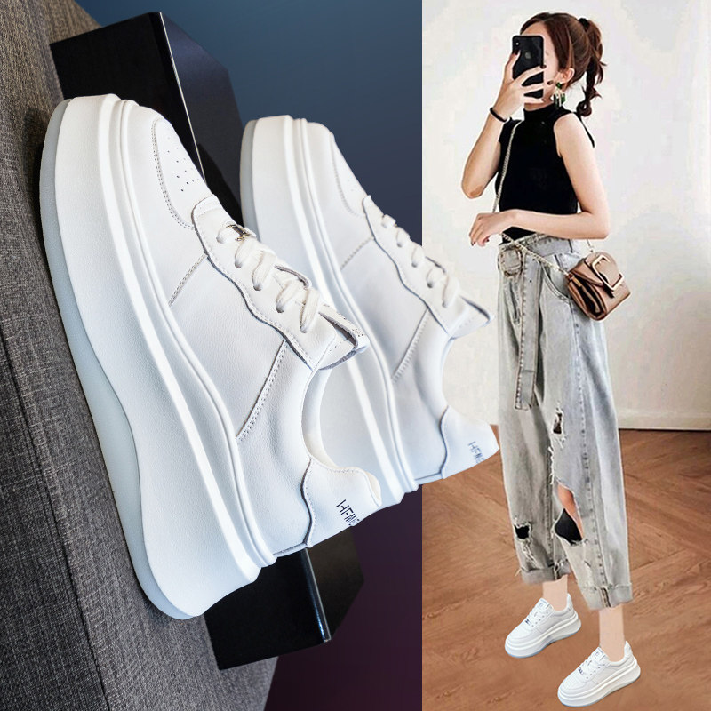 真皮厚底小白鞋女春季休闲板鞋