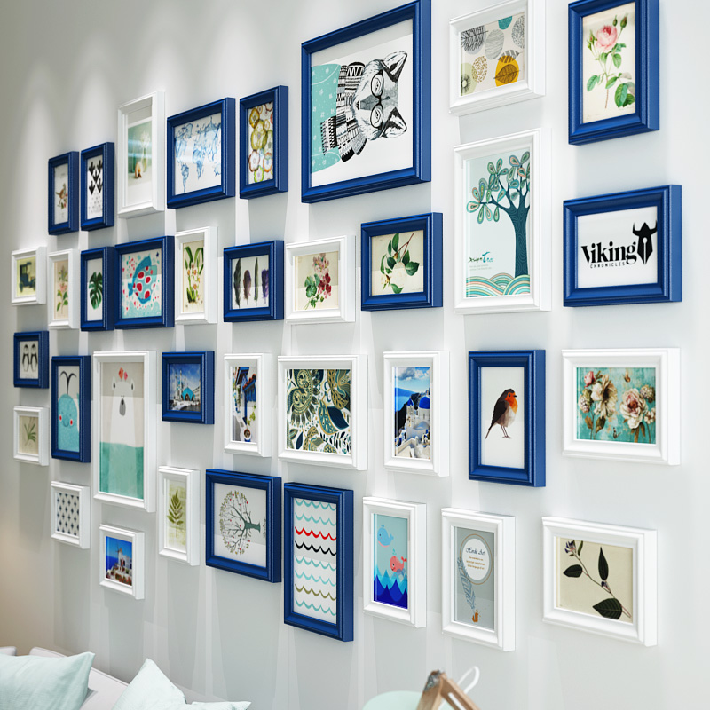 欧锋客厅大墙面实木照片墙挂墙相框创意组合墙饰欧式墙面装饰画