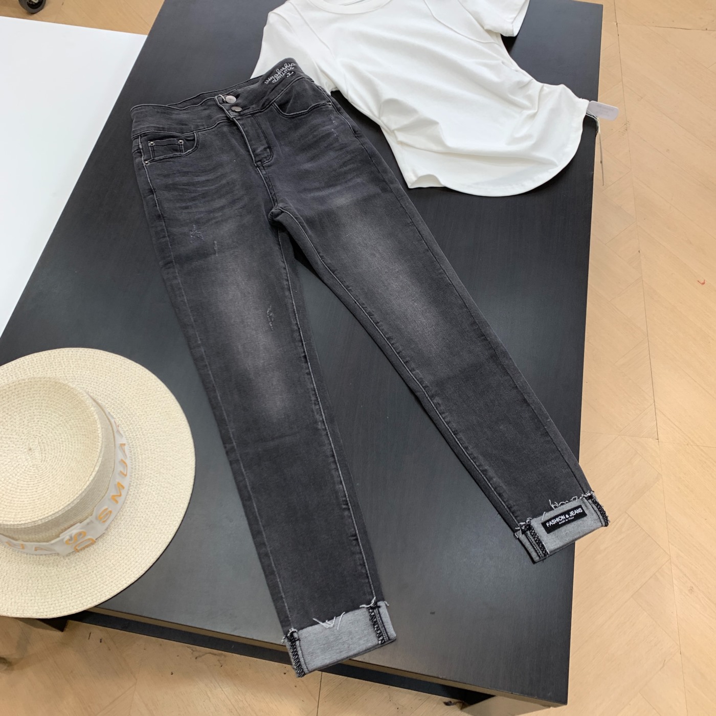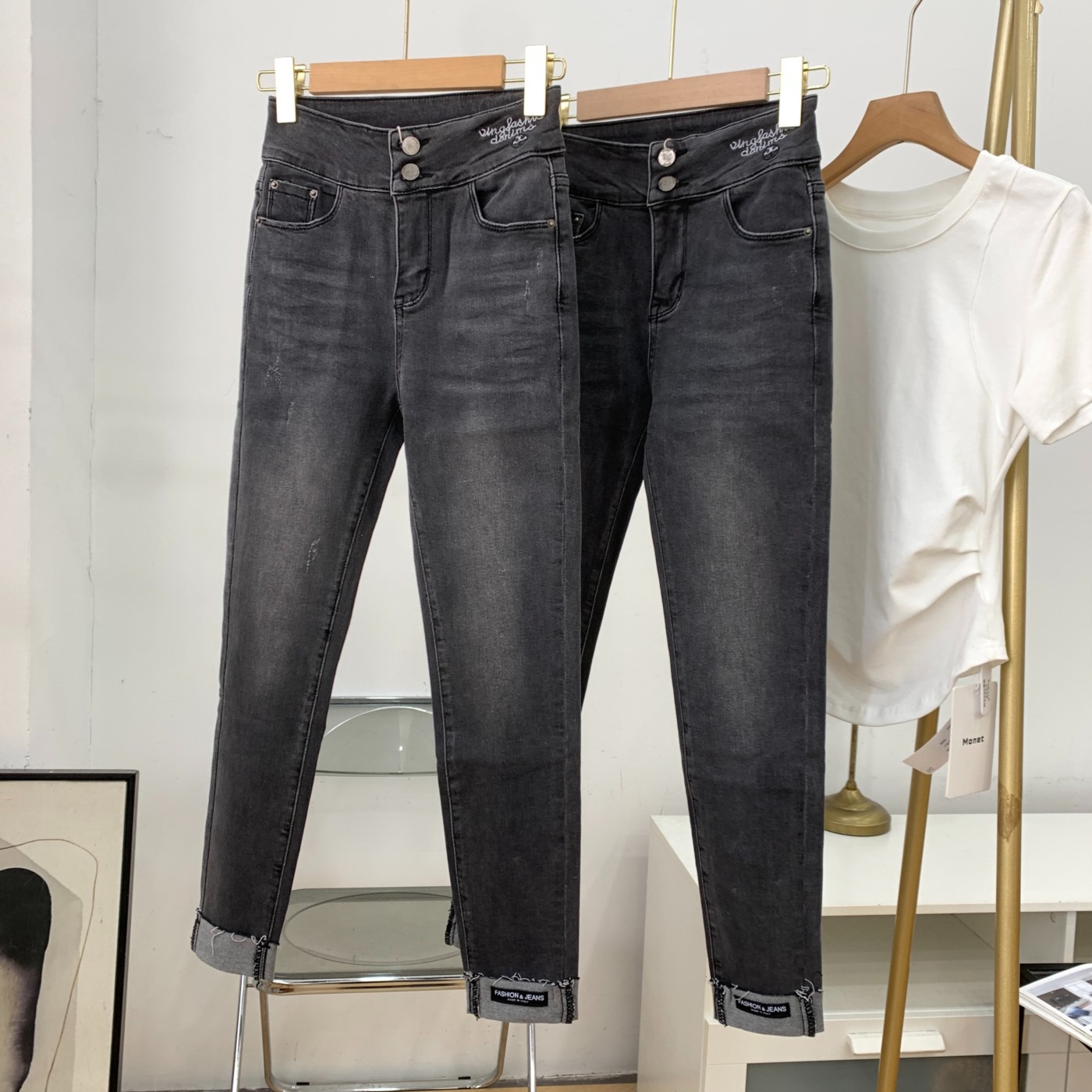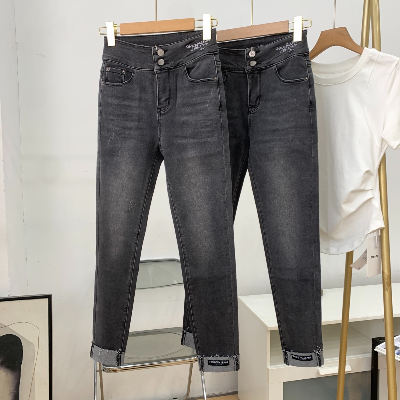 牛仔裤秋季新款修身黑色高腰显瘦休闲小脚小众设计J#3