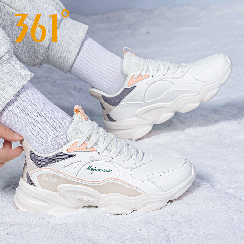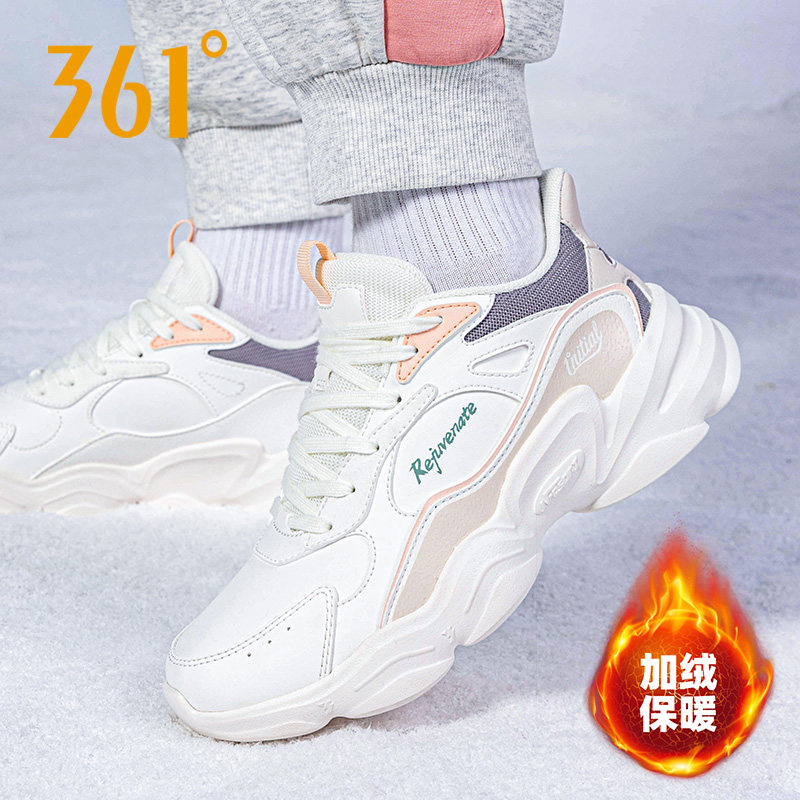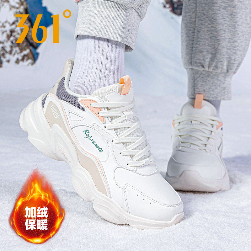 361女鞋跑步鞋冬季2025新款女款棉鞋皮面鞋子保暖加厚加绒运动鞋
