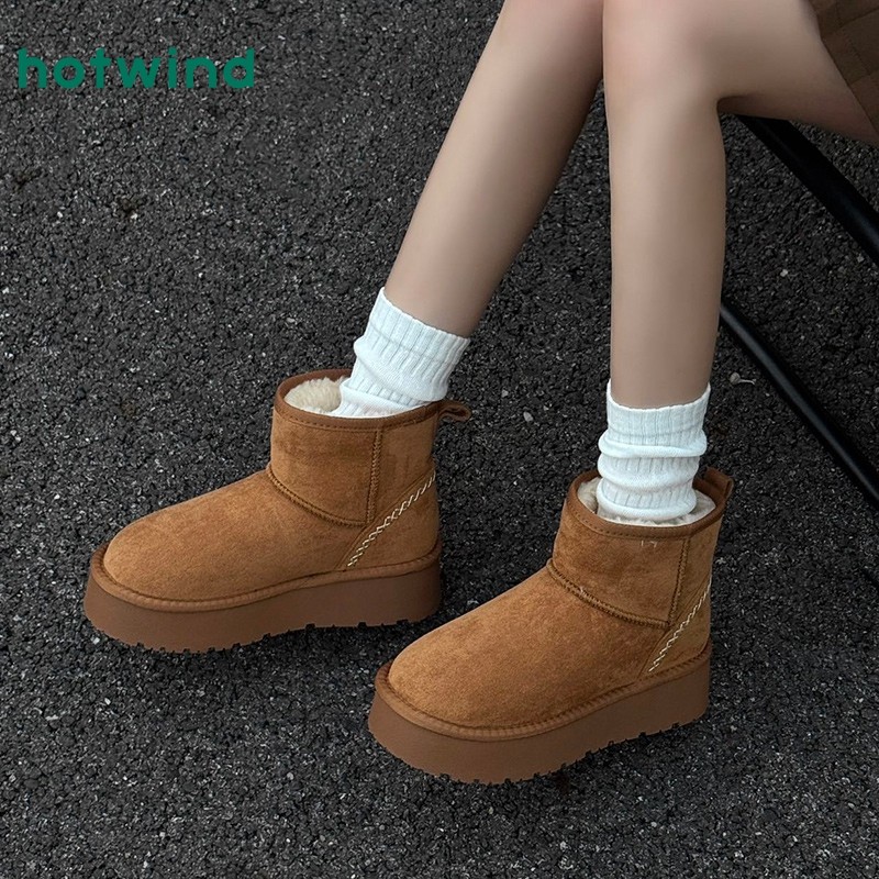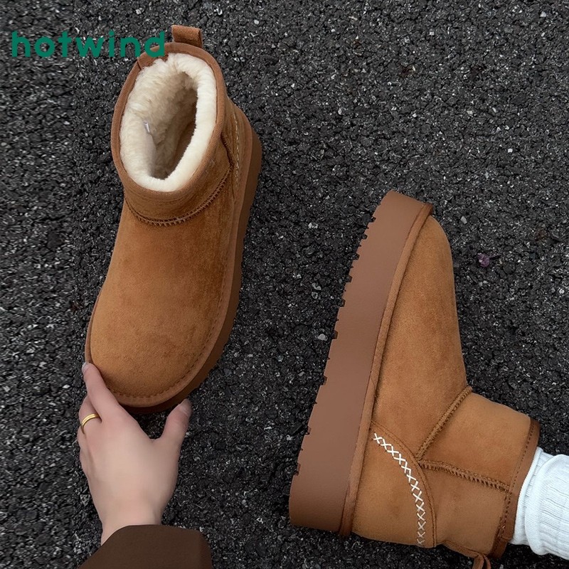 热风厚底雪地靴女2025年冬季新款复古保暖短靴子户外棉鞋百搭女鞋