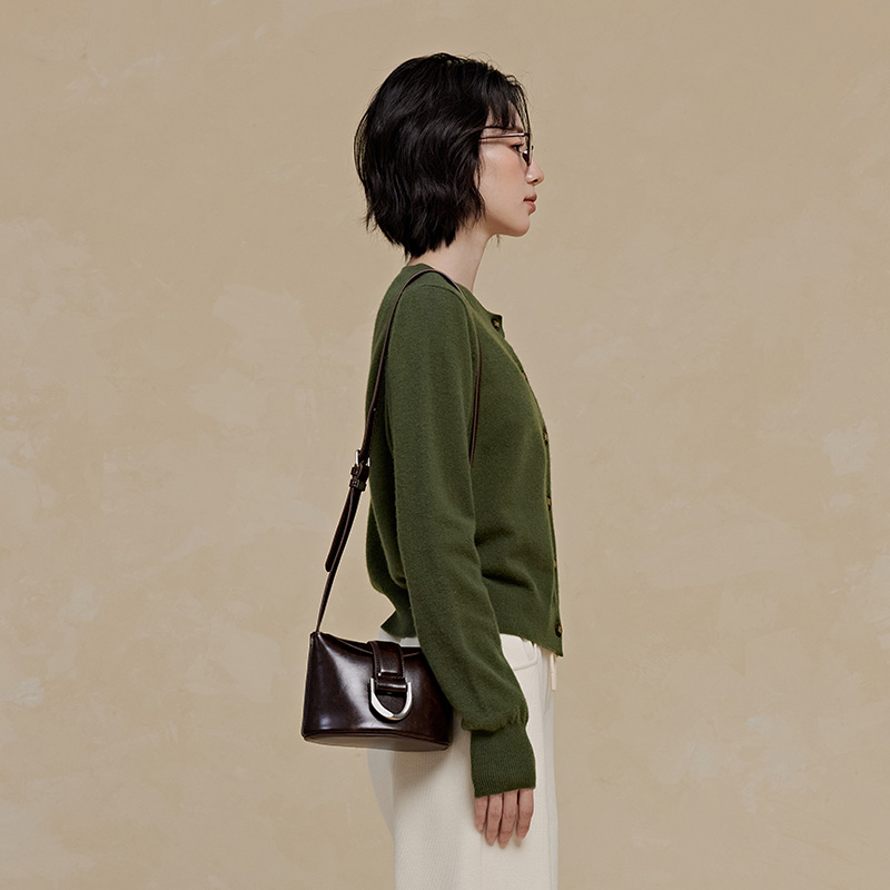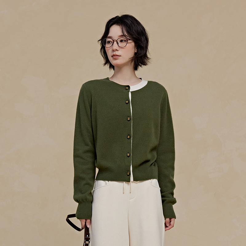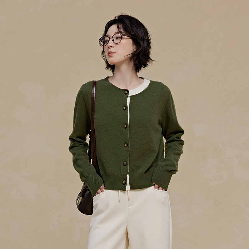 PIT复古绿色长袖毛针织衫开衫女2025秋季新款毛衣上衣百搭显瘦