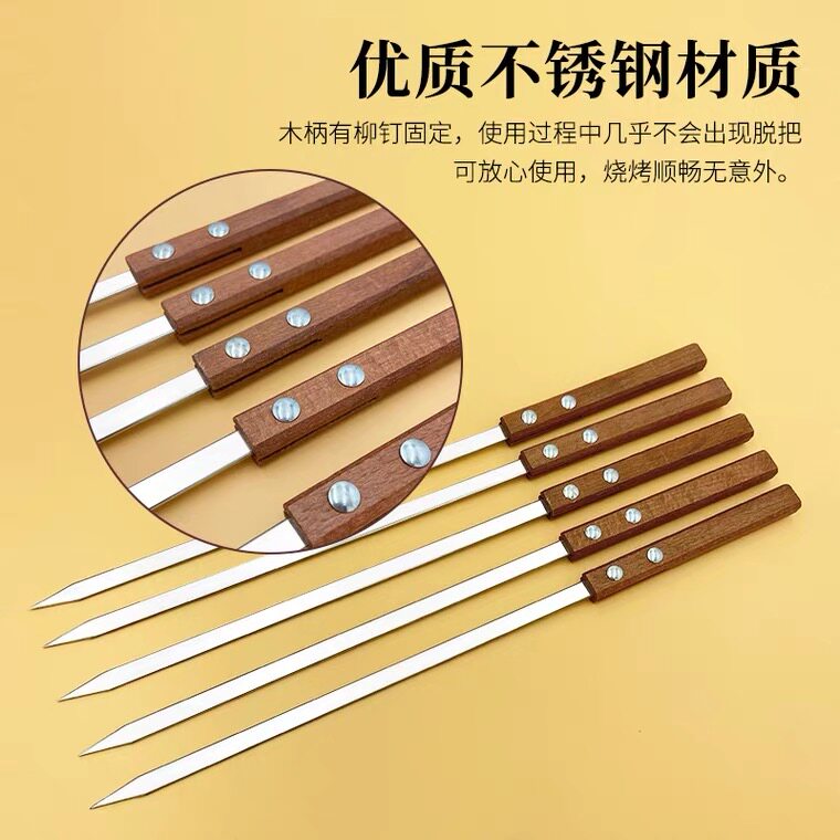新疆羊肉串烤签子大串大号烧烤不锈钢扁签铁钎字用具工具配件烤针