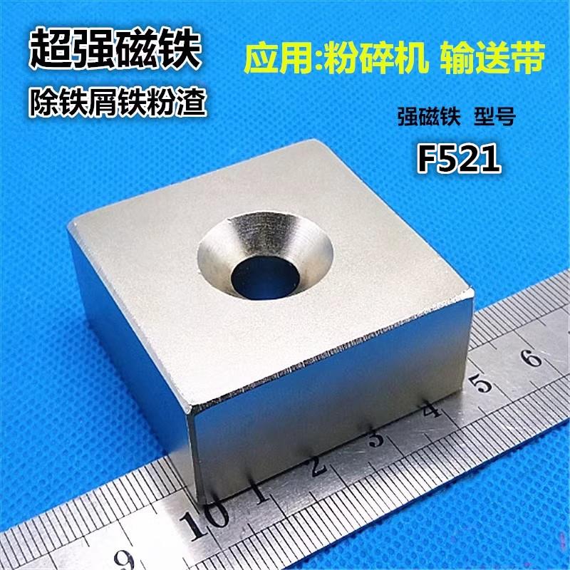 超强磁铁方形带孔强力吸铁石粉碎机输送带除铁永磁电焊磁钢50型号