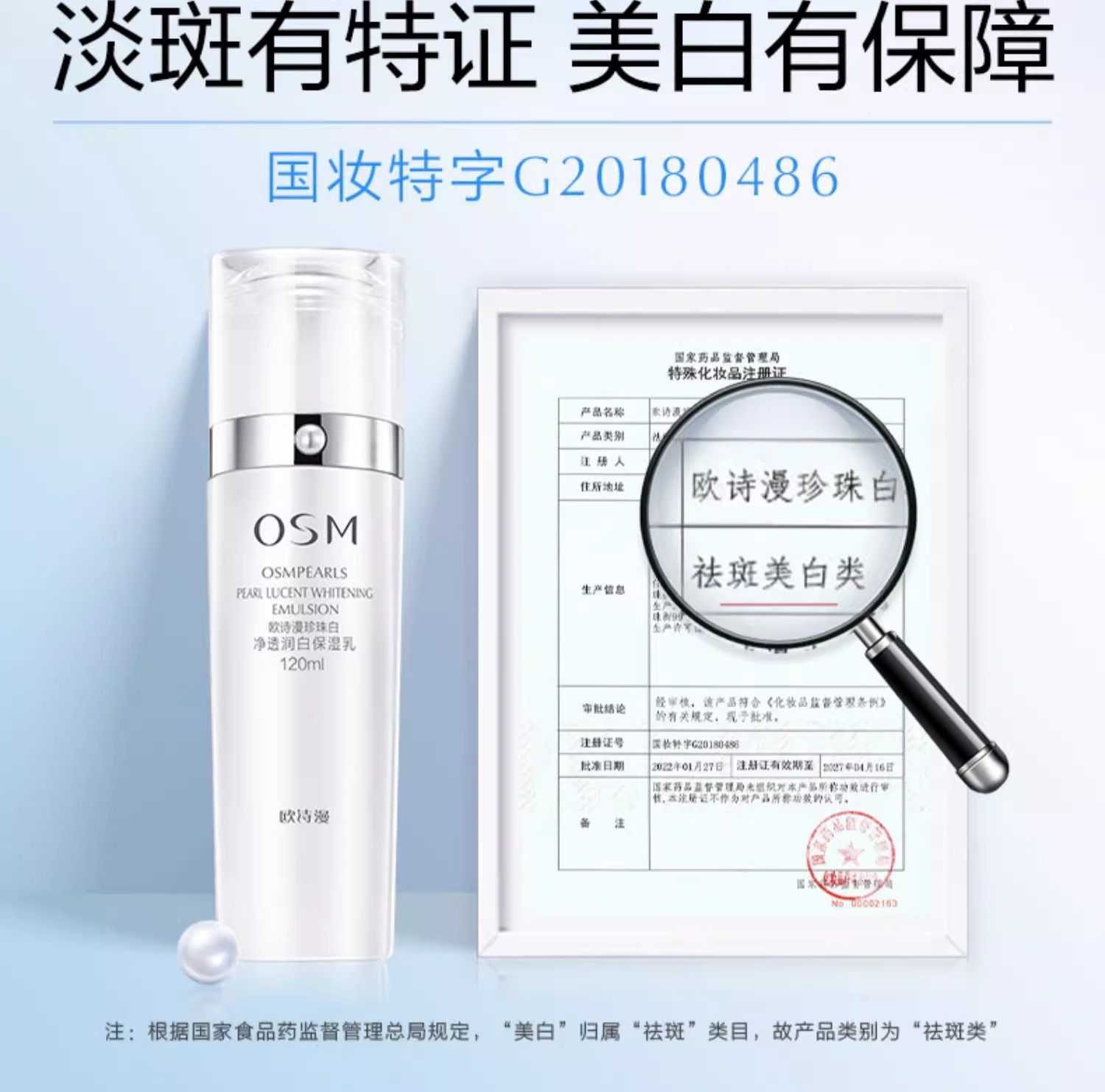 欧诗漫珍珠白净透润白保湿乳液深层补水美白淡斑改善暗沉官方正品