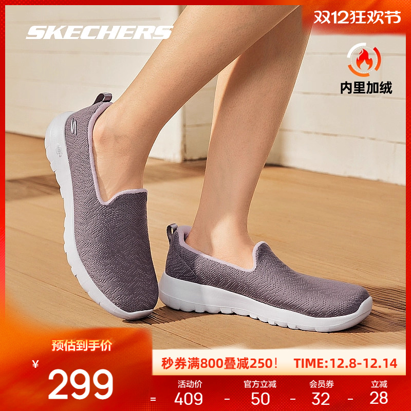 斯凯奇秋冬新款加绒妈妈鞋保暖舒适女子一脚蹬健步鞋休闲运动鞋
