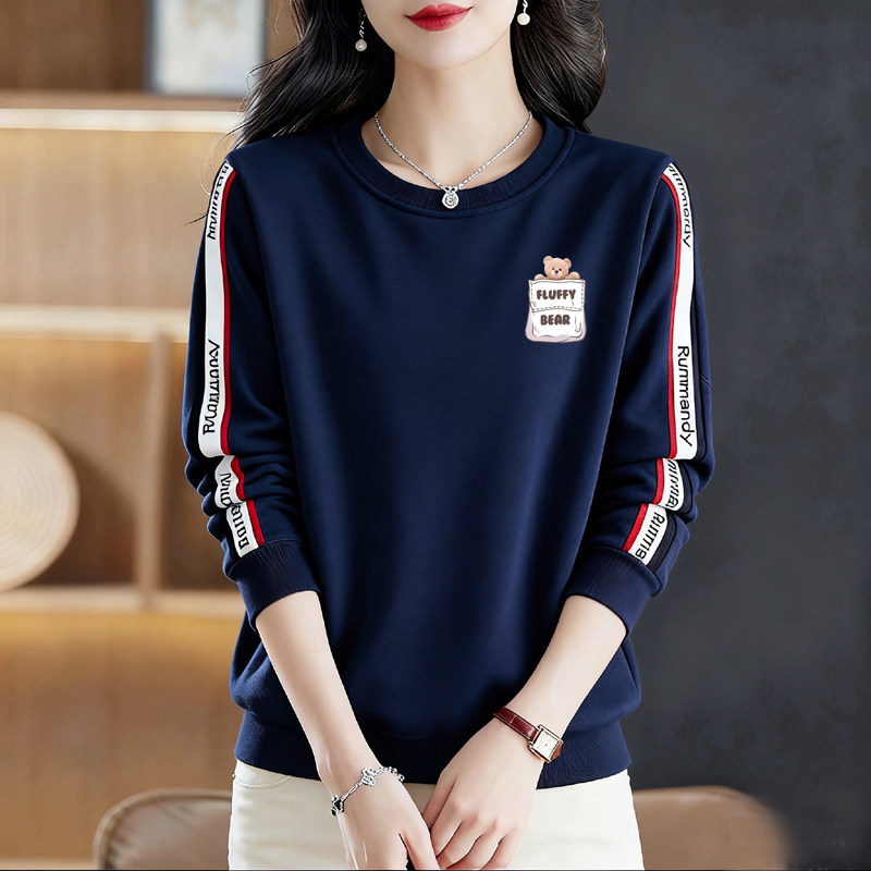 外贸专柜出口纯棉拼接印花卫衣秋季时尚洋气高级感圆领女装上衣潮