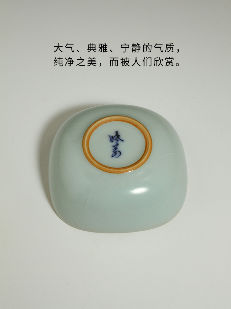 台湾晓芳窑汝窑四方圆杯40ml蔡晓芳天青矮四方茶杯主人杯开片可养