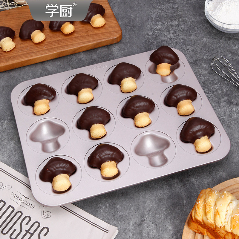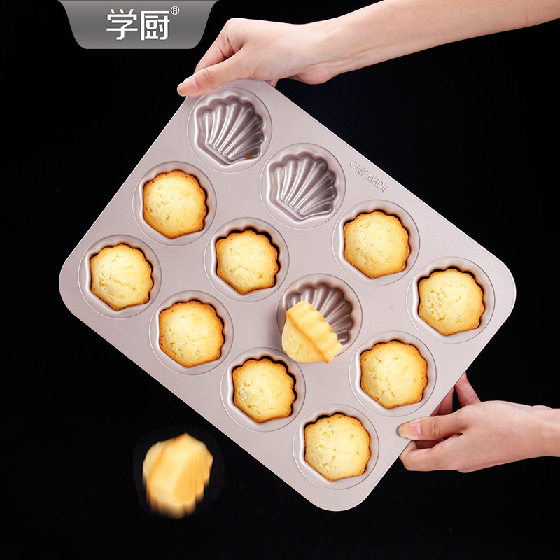 学厨蛋糕模具12连不粘贝壳小鱼蘑菇玛德琳烘焙模具玛芬烤盘卡通模