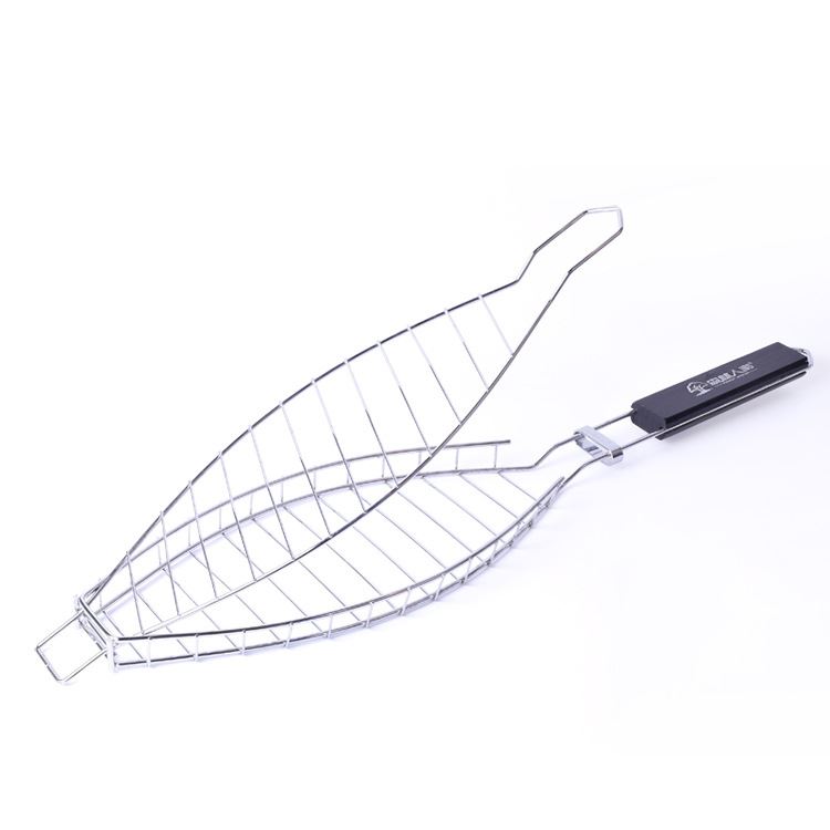 BBQ烧烤用具不锈钢烧烤网烤鱼网夹子烧烤架鱼形木柄烤网户外烤鱼