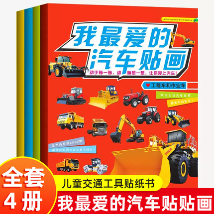 4册我最爱的汽车贴贴画汽车书籍 儿童贴纸书交通工具游戏贴图4岁幼儿专注力训练贴贴画书男孩男童女孩2-3-6-7岁工程车消防车小车迷