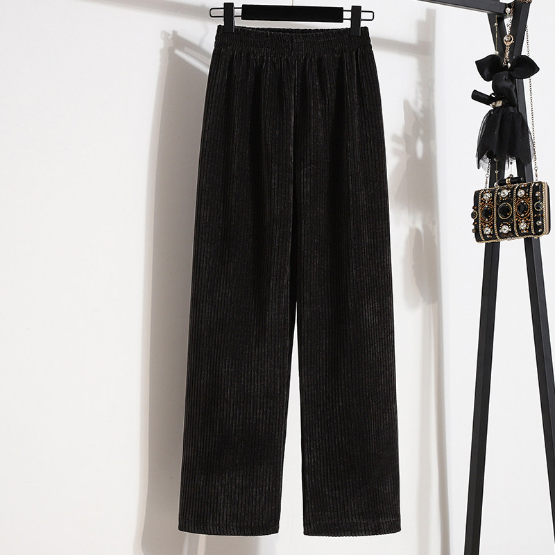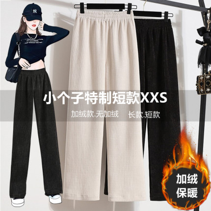 150小个子条绒阔腿裤秋冬高腰垂感xxs加小码女装雪尼尔直筒裤加绒