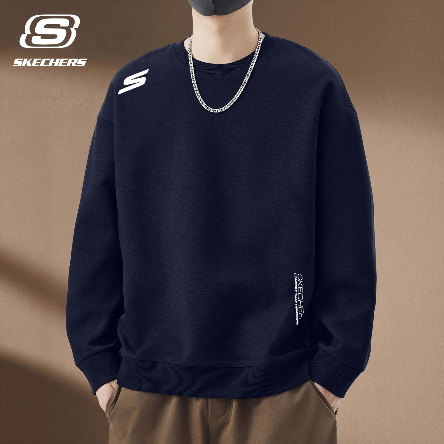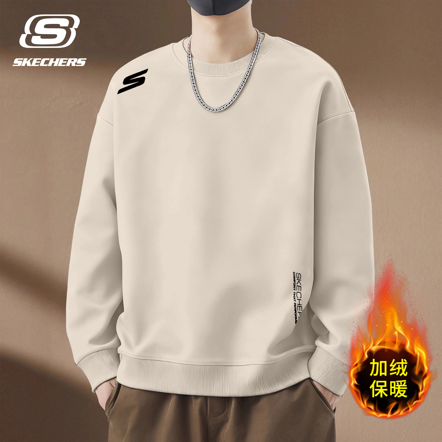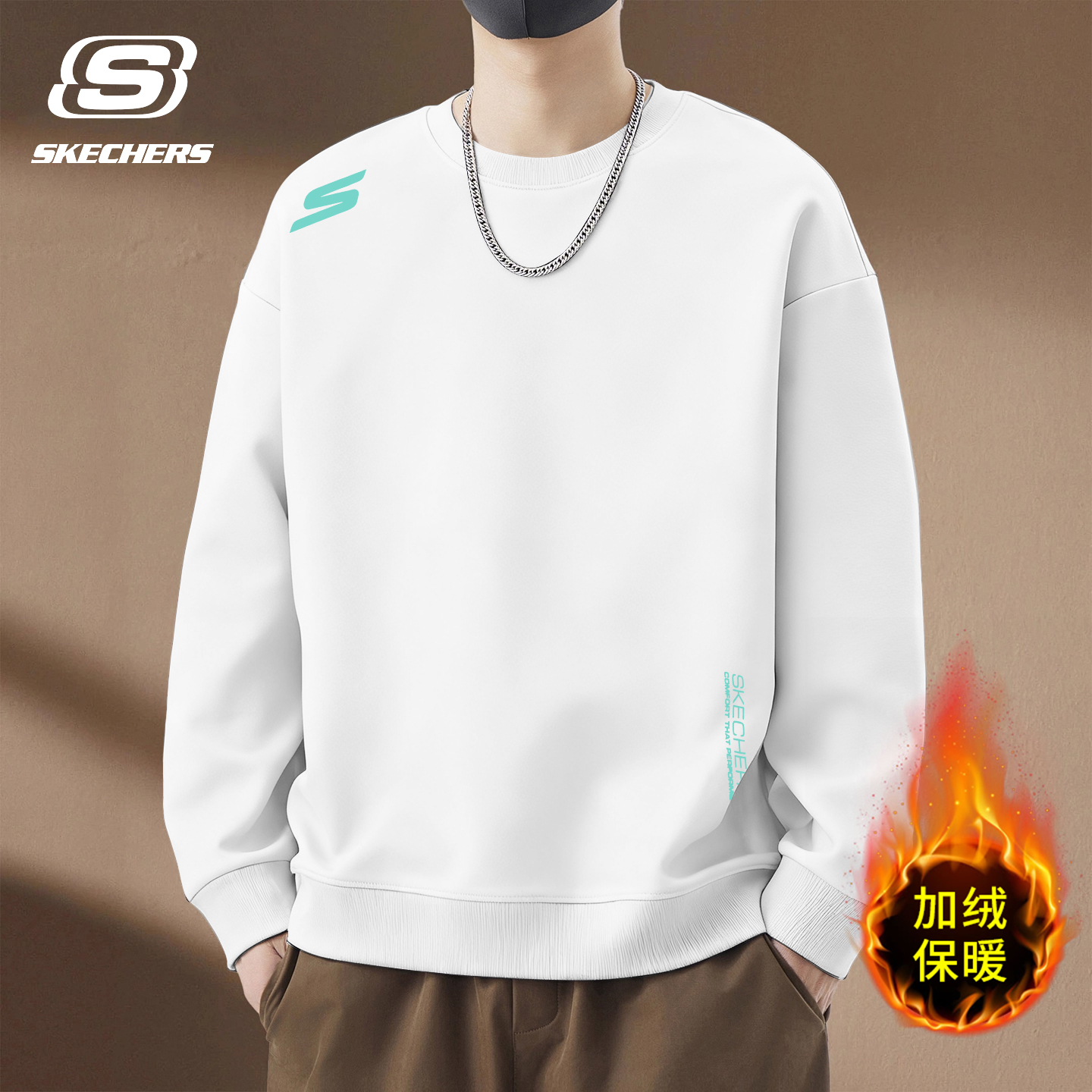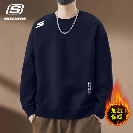 斯凯奇加绒卫衣男士圆领内搭体恤冬季加厚保暖长袖上衣潮流运动服