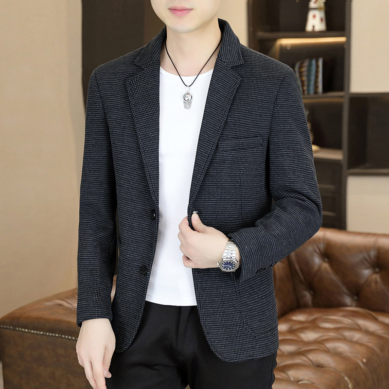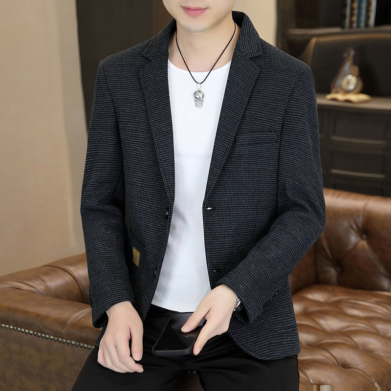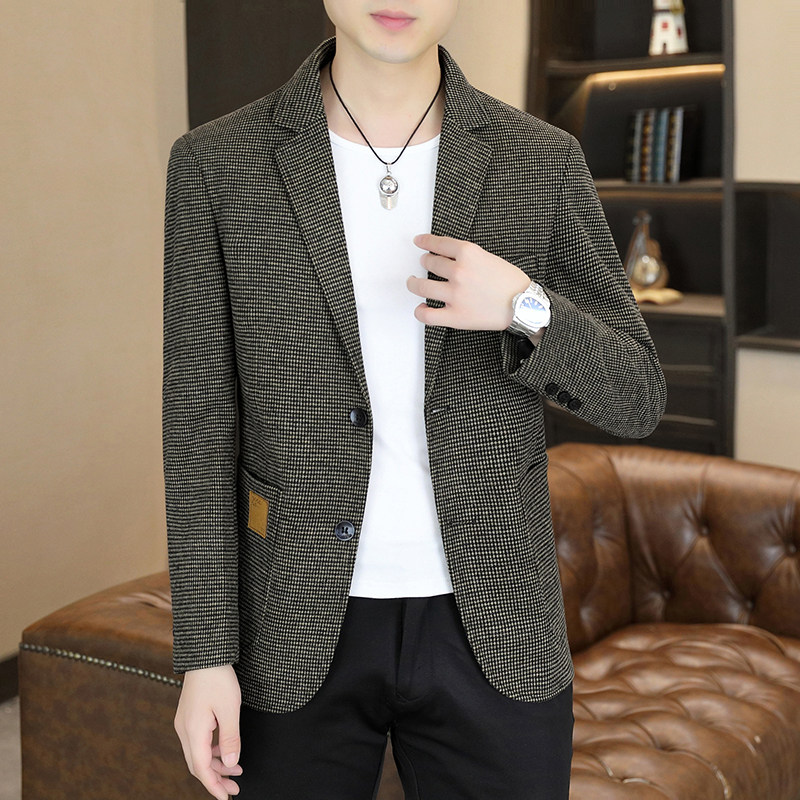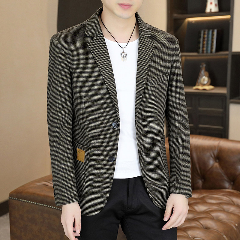 千鸟格西装男外套春秋季韩版潮流修身小西服男士帅气休闲单西上衣