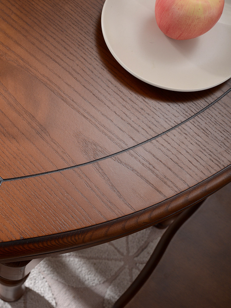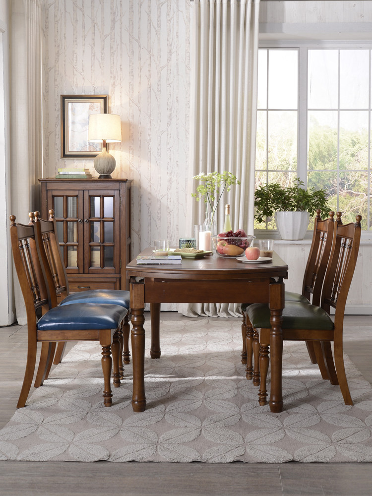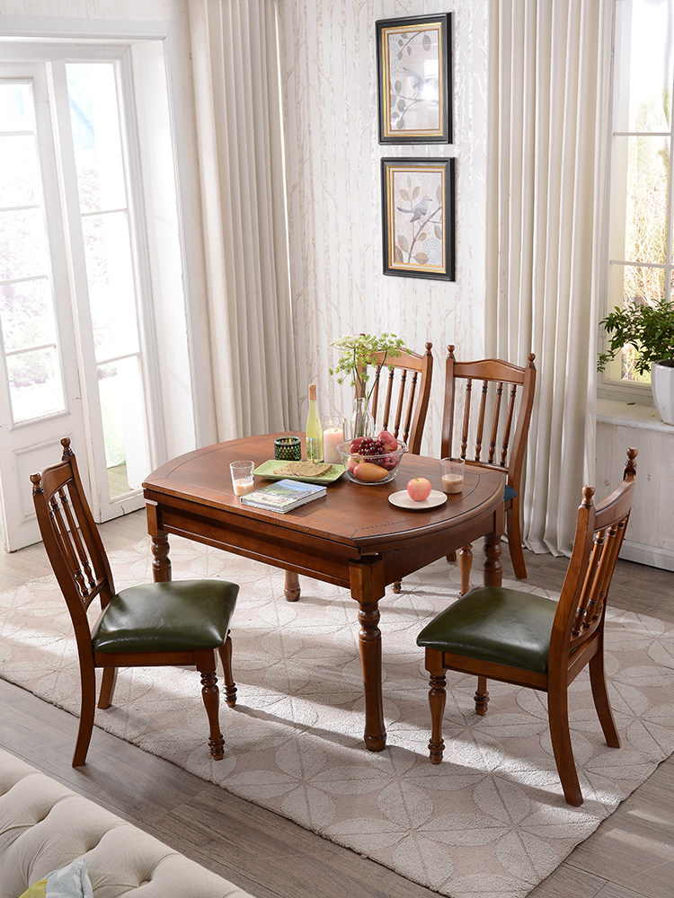 美式乡村实木伸缩餐桌简约可折叠餐桌椅组合欧式家具圆形推拉饭桌