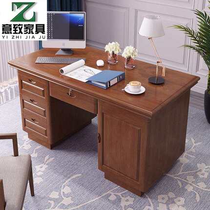 中式实木办公桌学生写字台电脑桌书椅一套家用书桌台成套办公家具