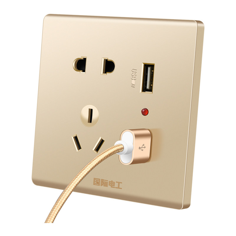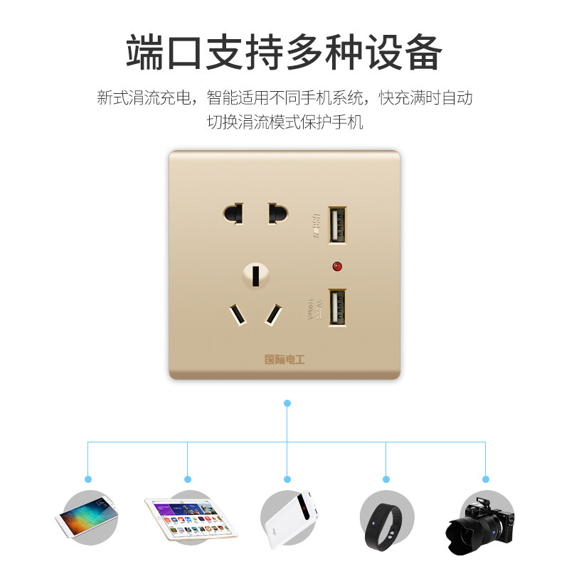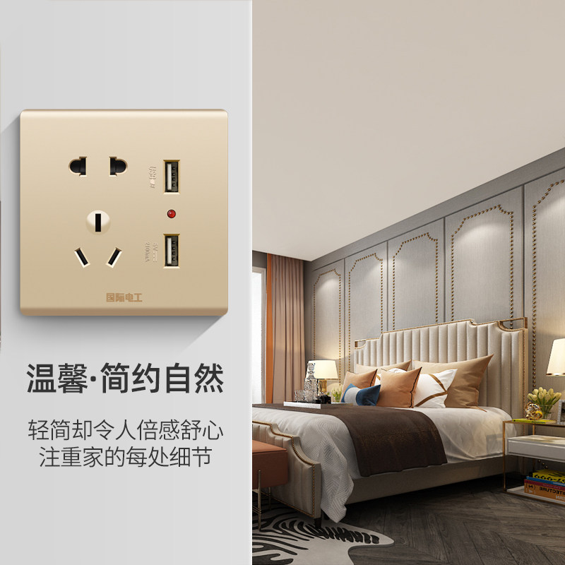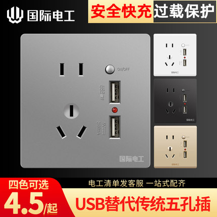 国际电工86型USB插座带开关5五孔插座面板手机充电快充墙壁多孔