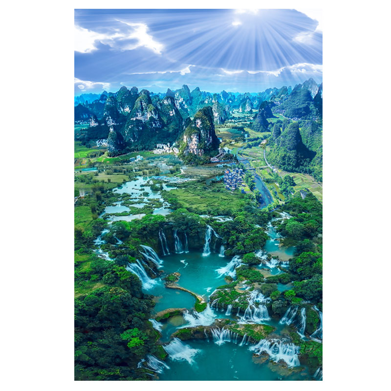 实景航拍竖版德天大瀑布背景墙装饰壁画青山绿水风水招财贴纸墙画