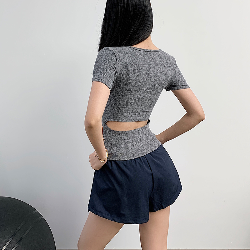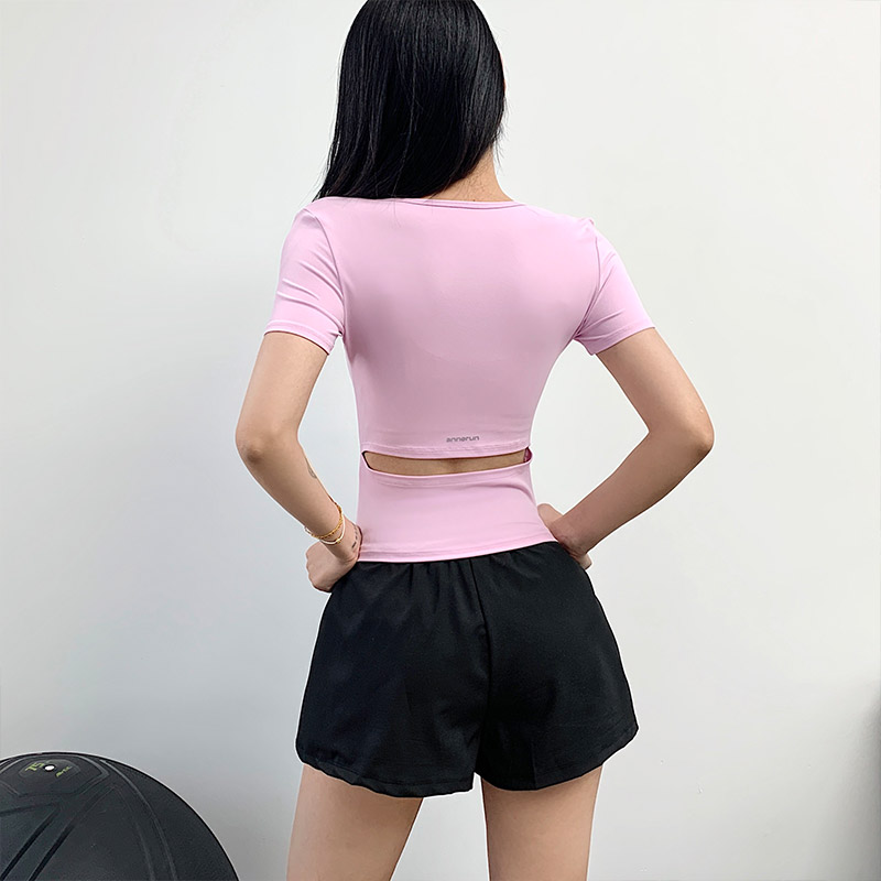 annerun修身瑜伽服T恤女U领2025新款短袖运动上衣休闲跑步速干衣