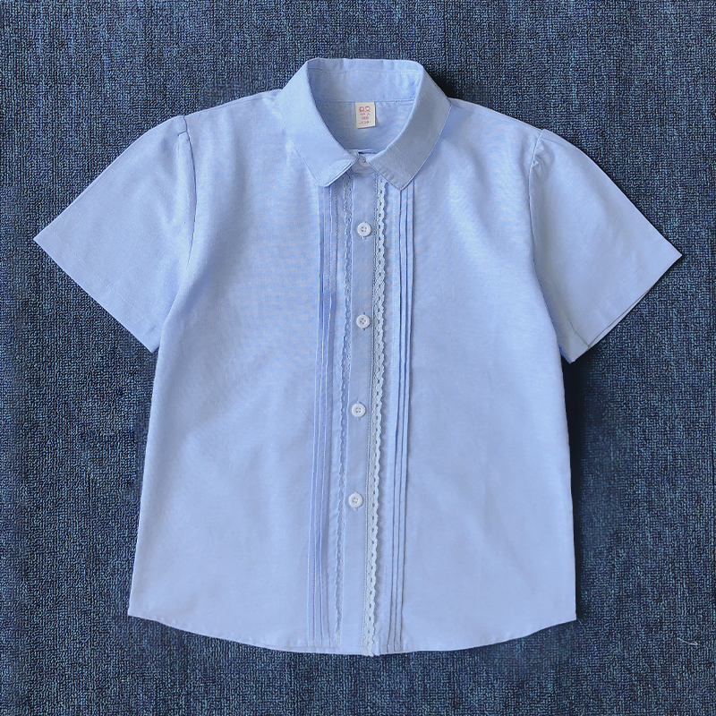 儿童装短袖衬衫浅蓝色花边衬衣女夏季中大童小学生班服演出服校服