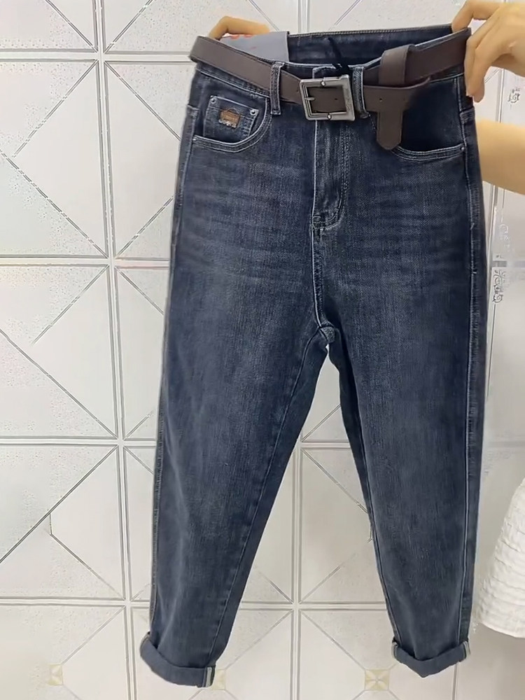 春秋季新款宽松直筒九分牛仔裤子男大码弹力小脚休闲9分哈伦裤潮