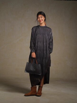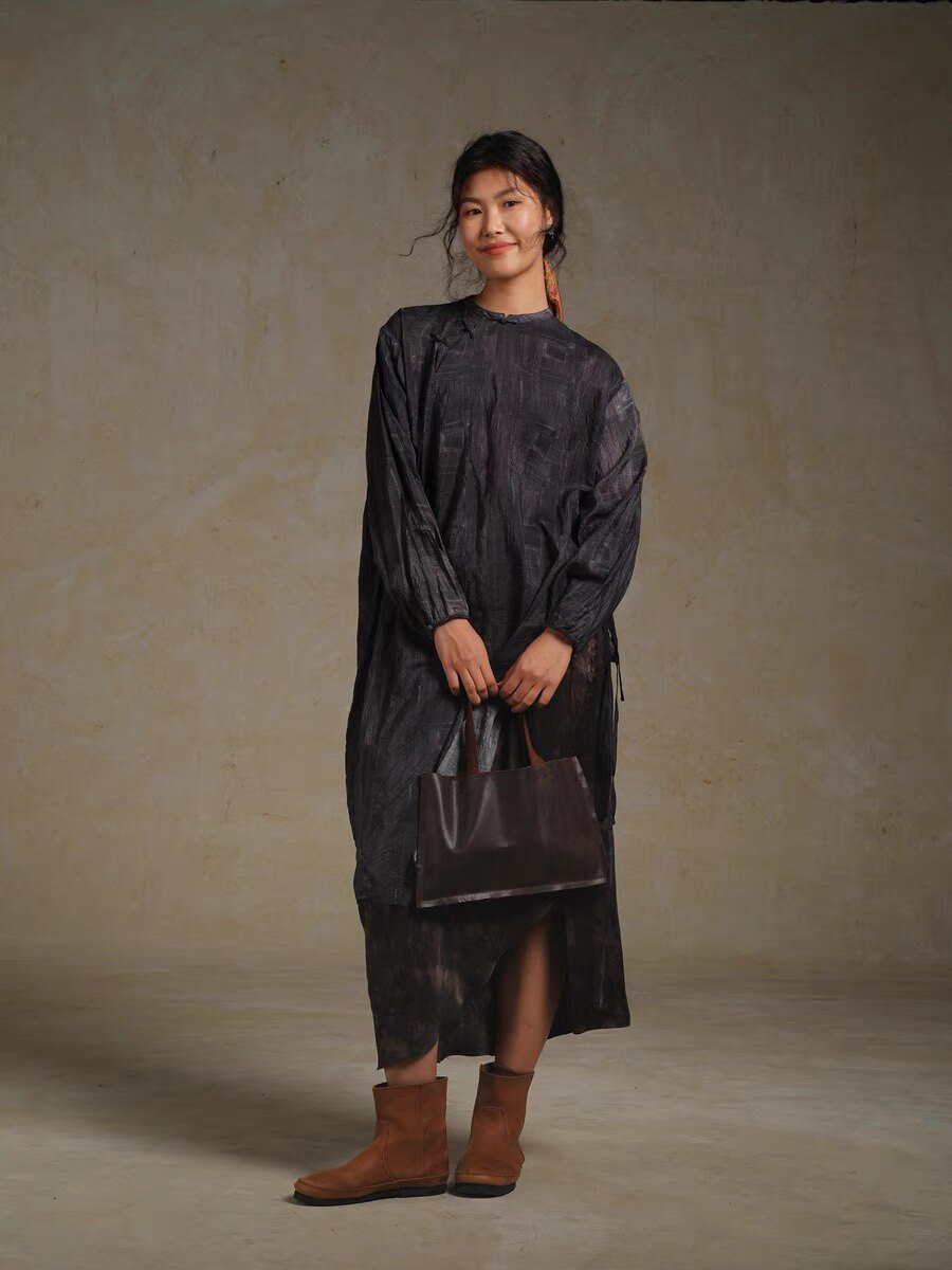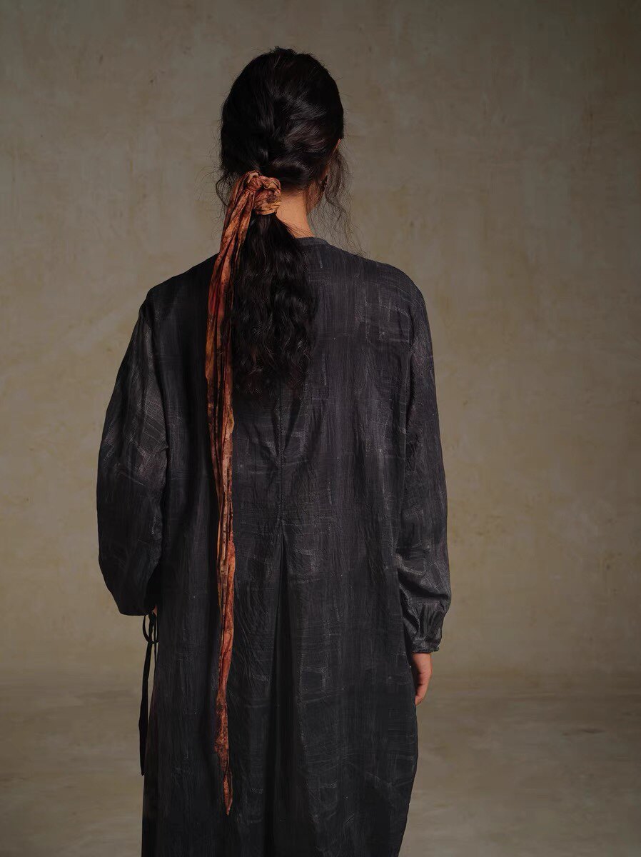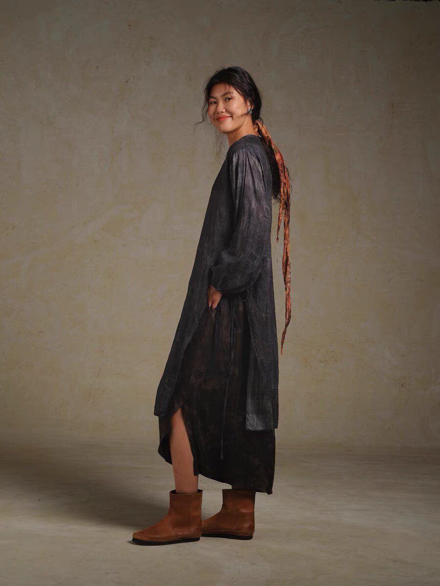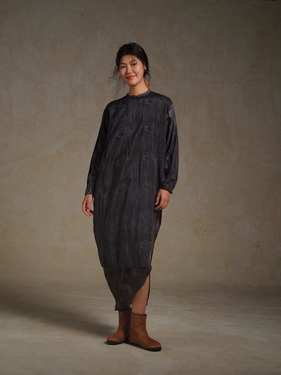 沉香布衣草堂几见秋款文艺清新九分袖真丝长袍连衣裙W33227无活动