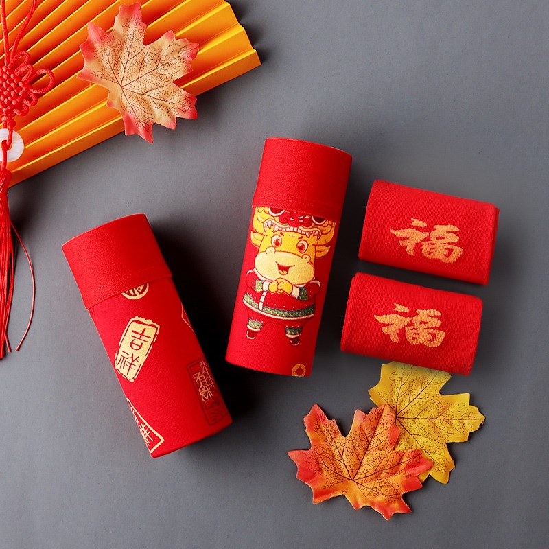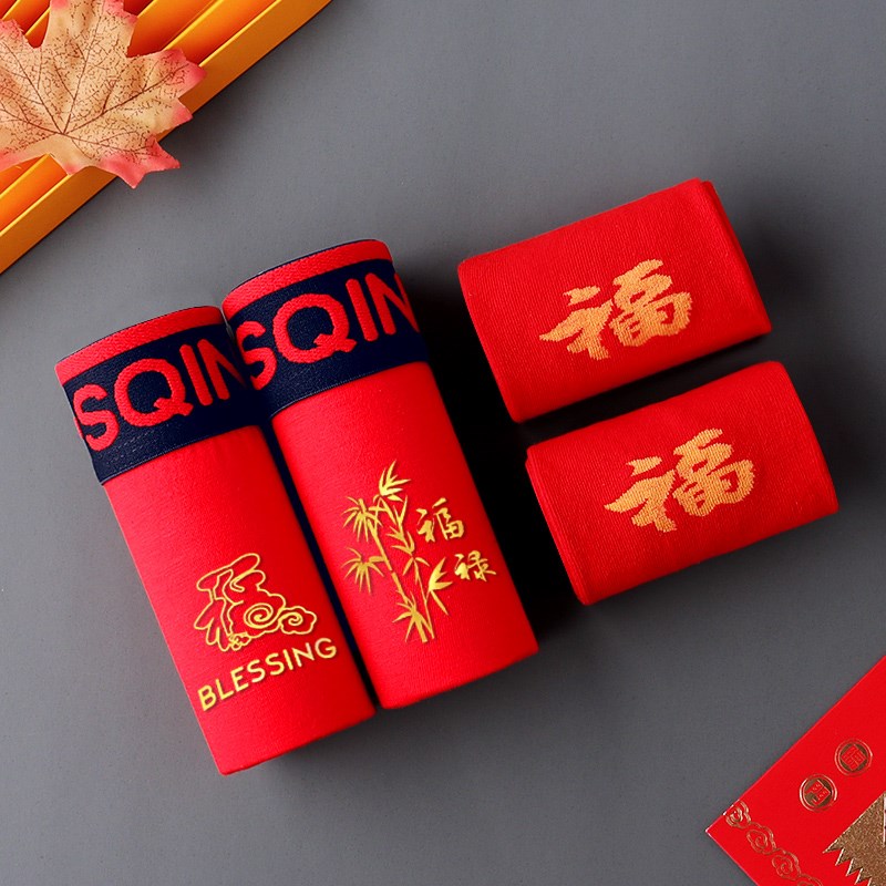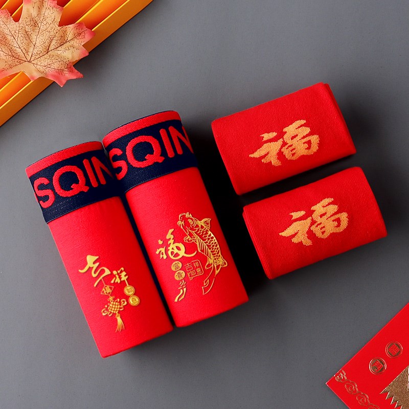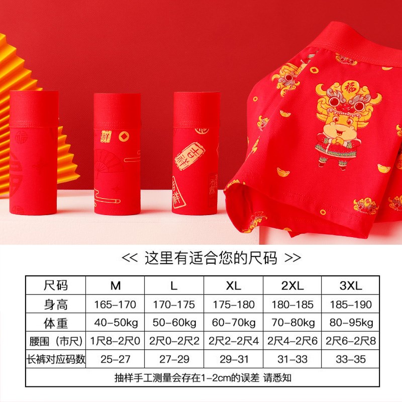 本命年内裤男个性潮流红色牛年裤头青年棉L四角短裤结婚男生平角
