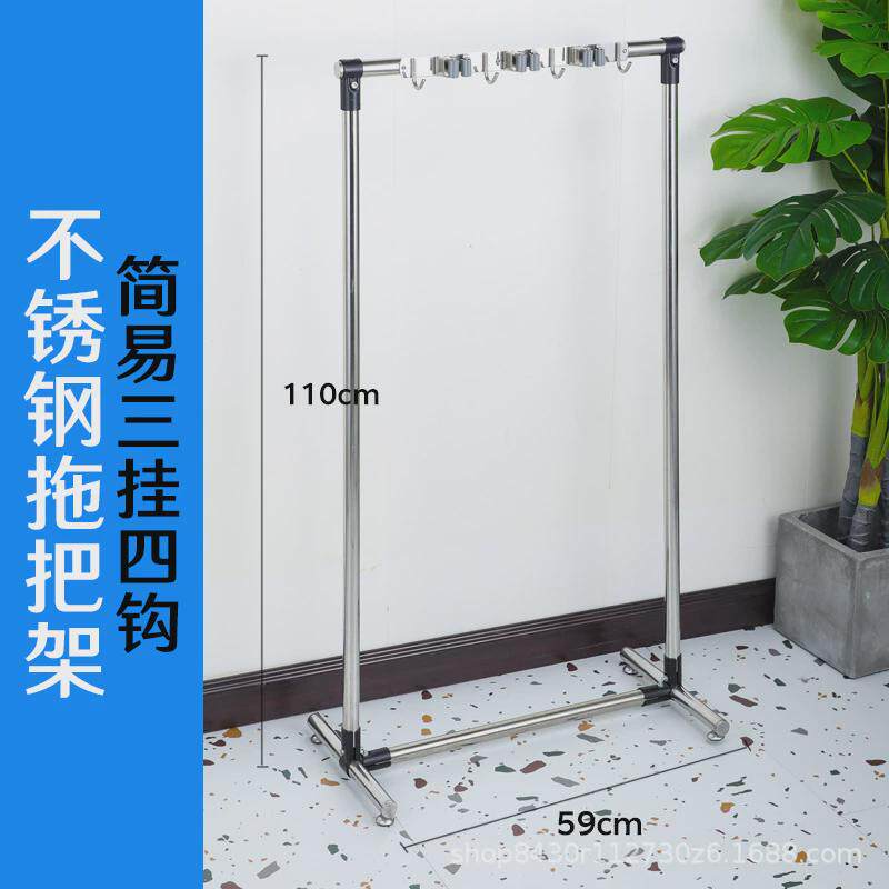 不锈钢拖把架落地式挂架可移动放扫把架墩布收纳清洁工具置物架子