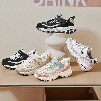 Skechers斯凯奇奶茶熊女大童春秋轻盈透气魔术贴运动鞋302526L