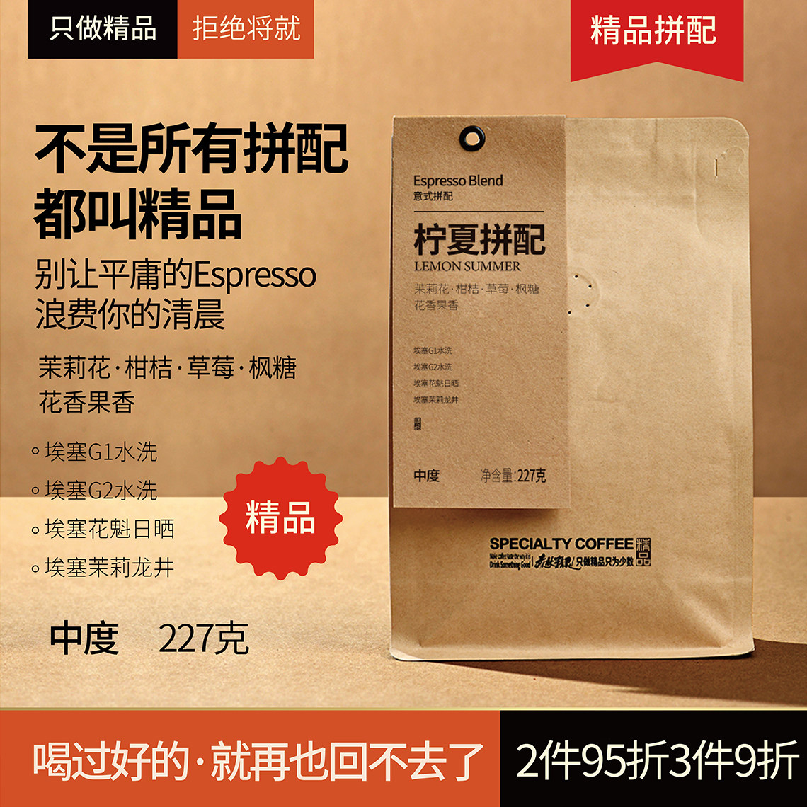 拾味云上精品意式拼配咖啡豆瑰夏埃塞云南浓缩美式拿铁阿拉比卡豆