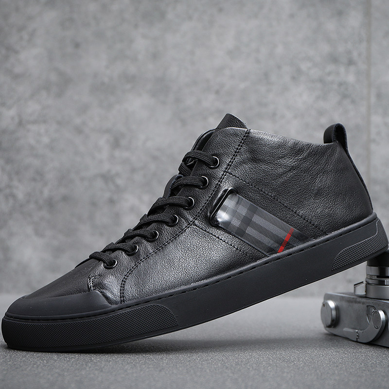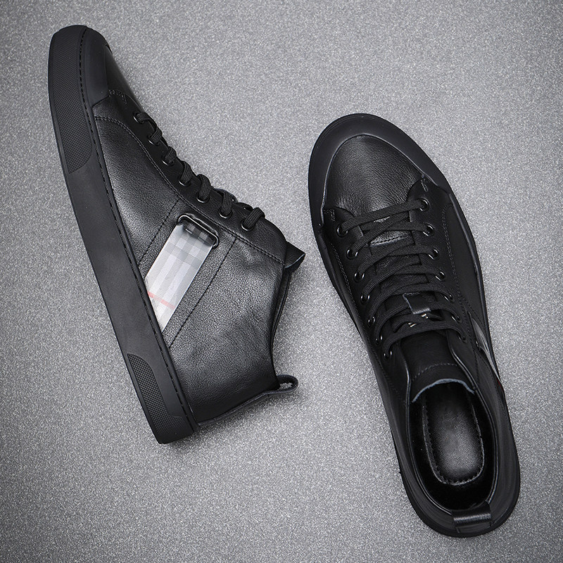 高帮皮鞋秋冬季软皮简约风板鞋男