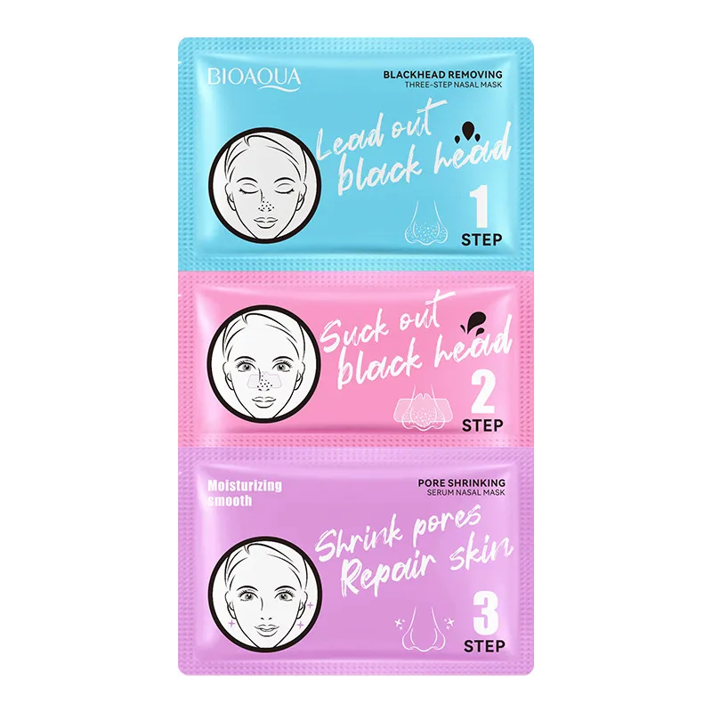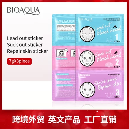 包邮10片全英文去黑头三步曲鼻贴BIOAOUA清洁毛孔T区护理套装跨境