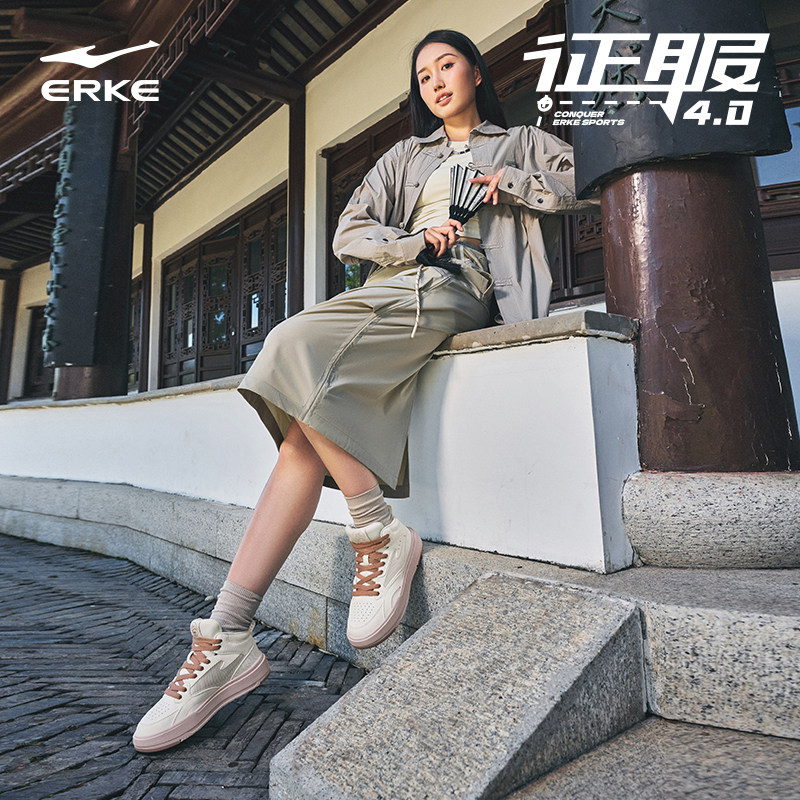 征服4|鸿星尔克板鞋高帮运动鞋秋季新款增高鞋休闲鞋学生百搭女鞋