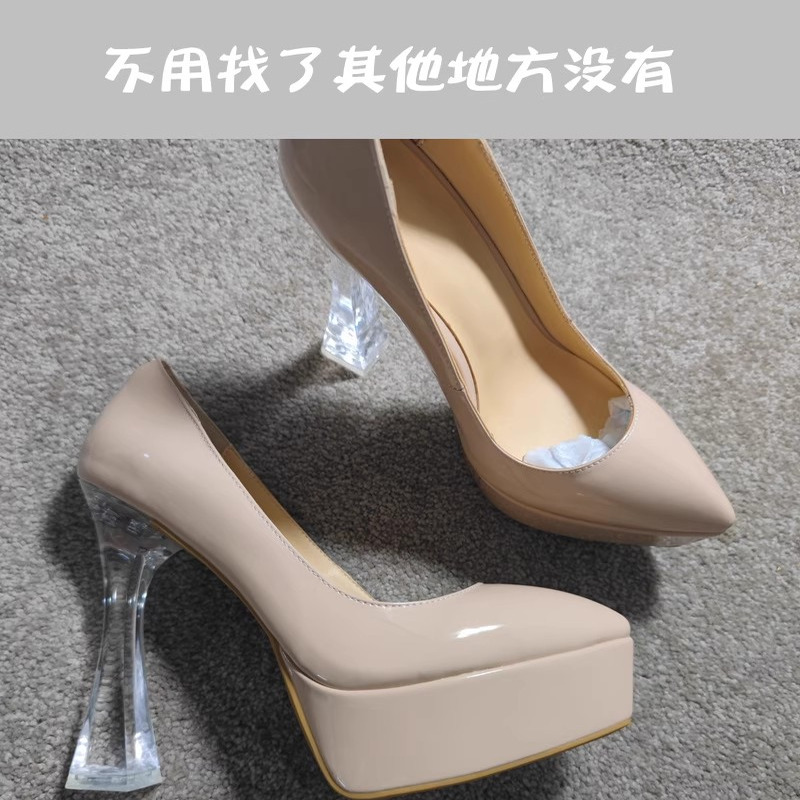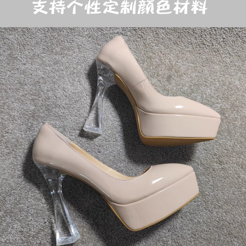 裸色高跟鞋女尖头2025年新款百搭气质粗跟单鞋漆皮职业单鞋秋季