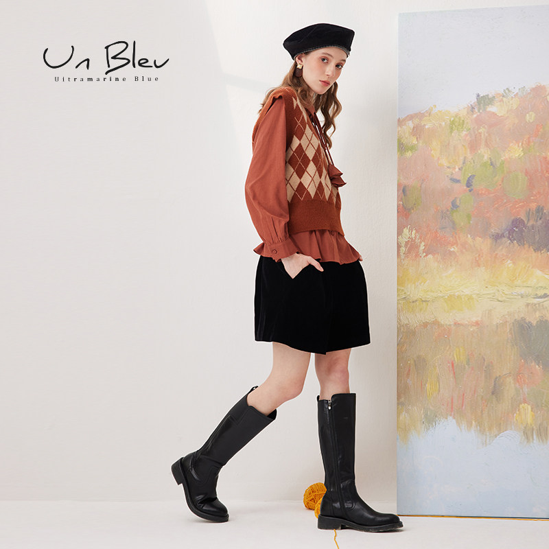 Unbleu方领衬衫女小个子搭配马甲好看法式气质秋季新款女装上衣