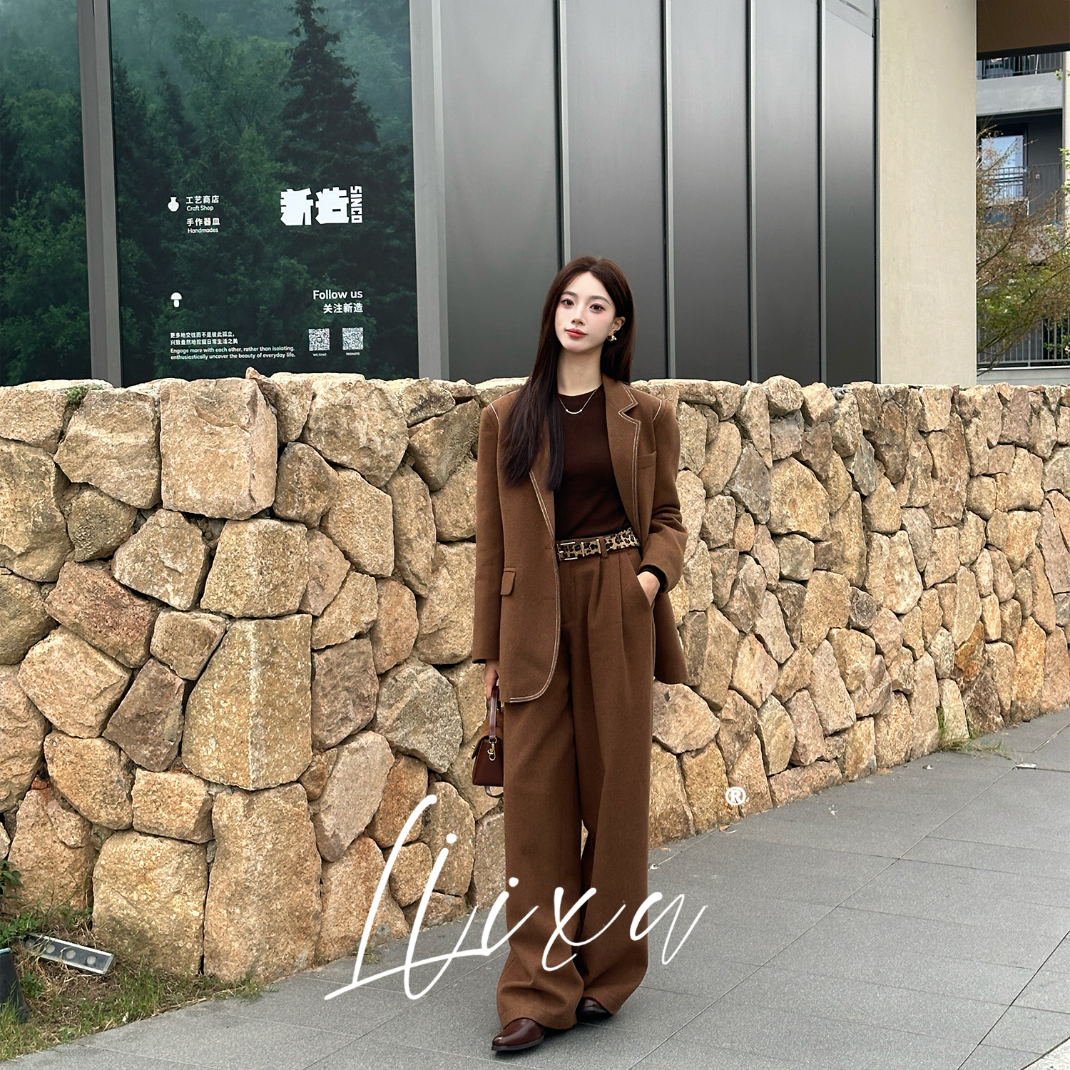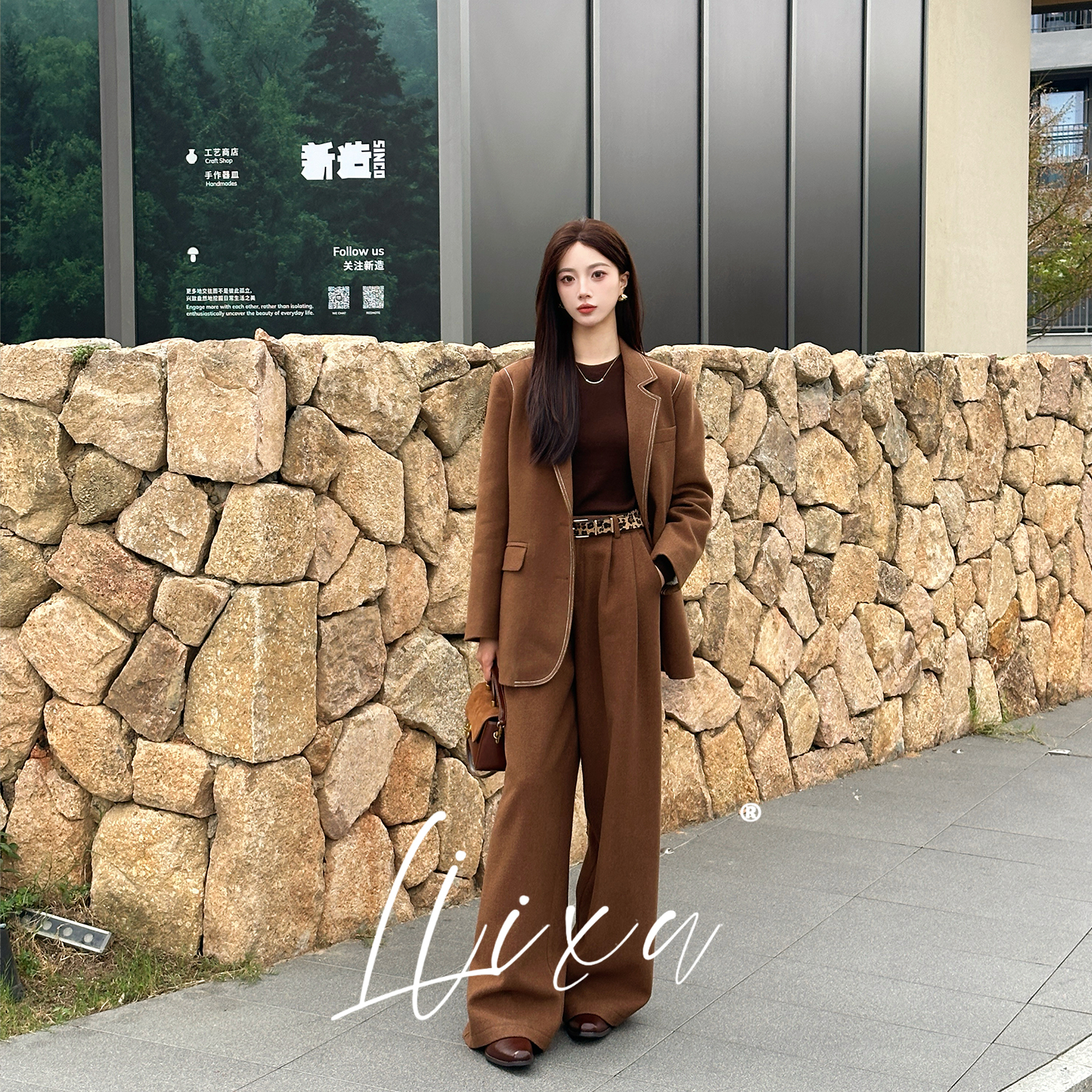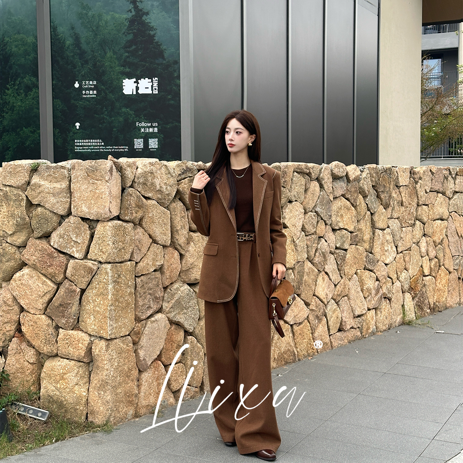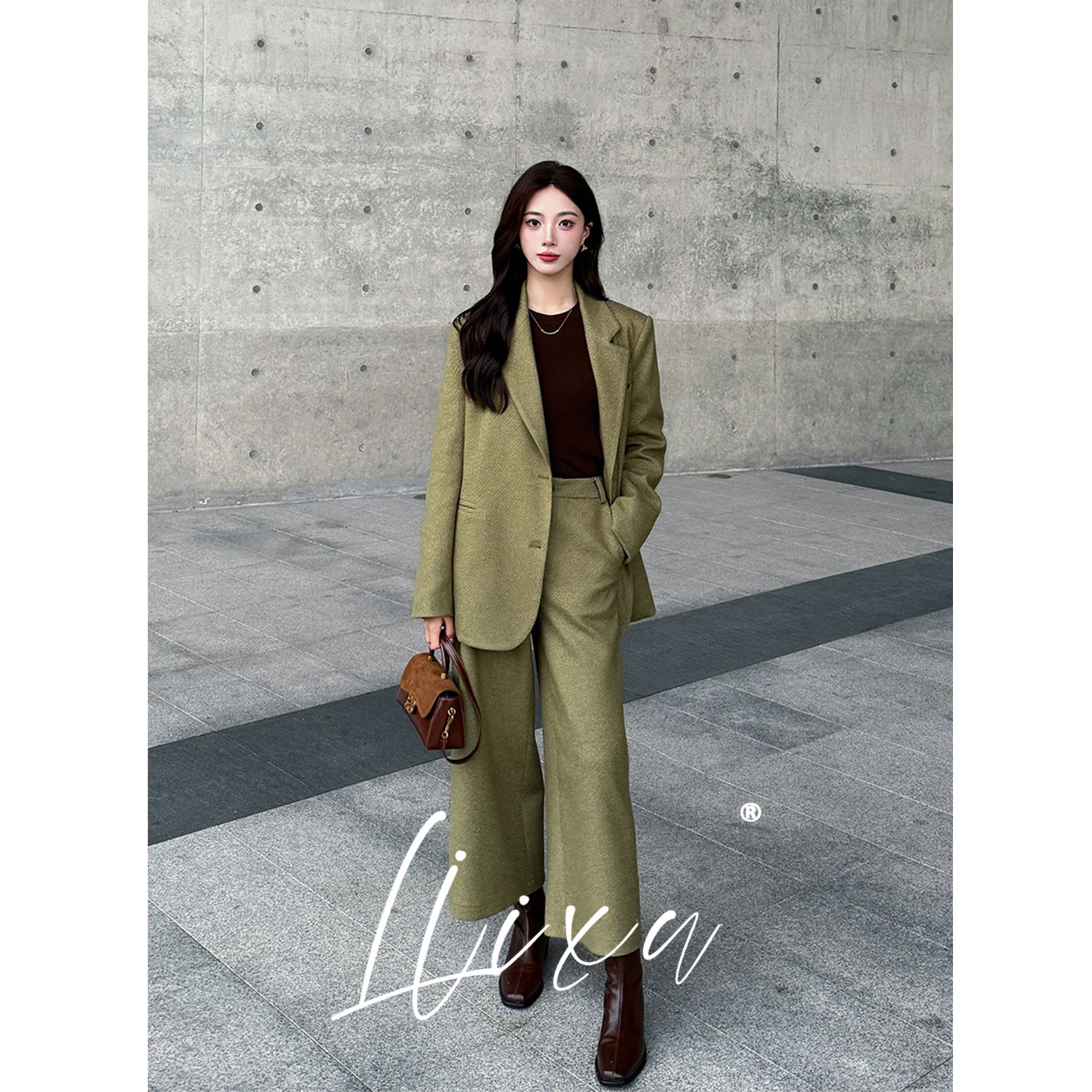 Liixu 老钱风西装时尚套装女冬季新款90白鸭绒西装外套阔腿裤套装