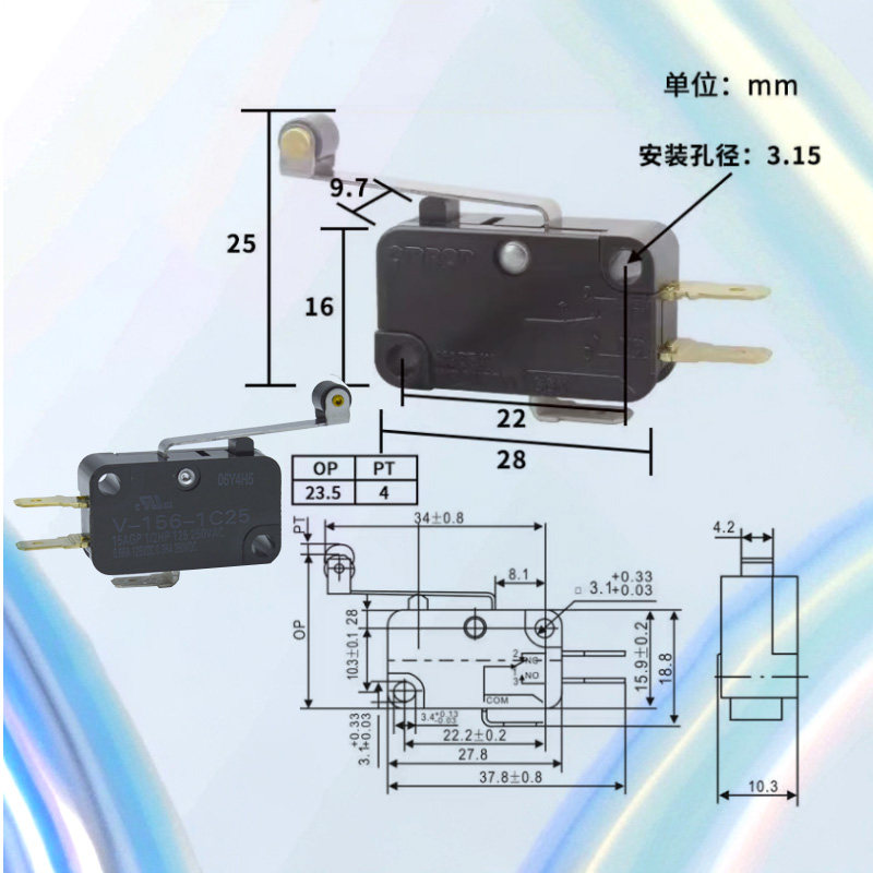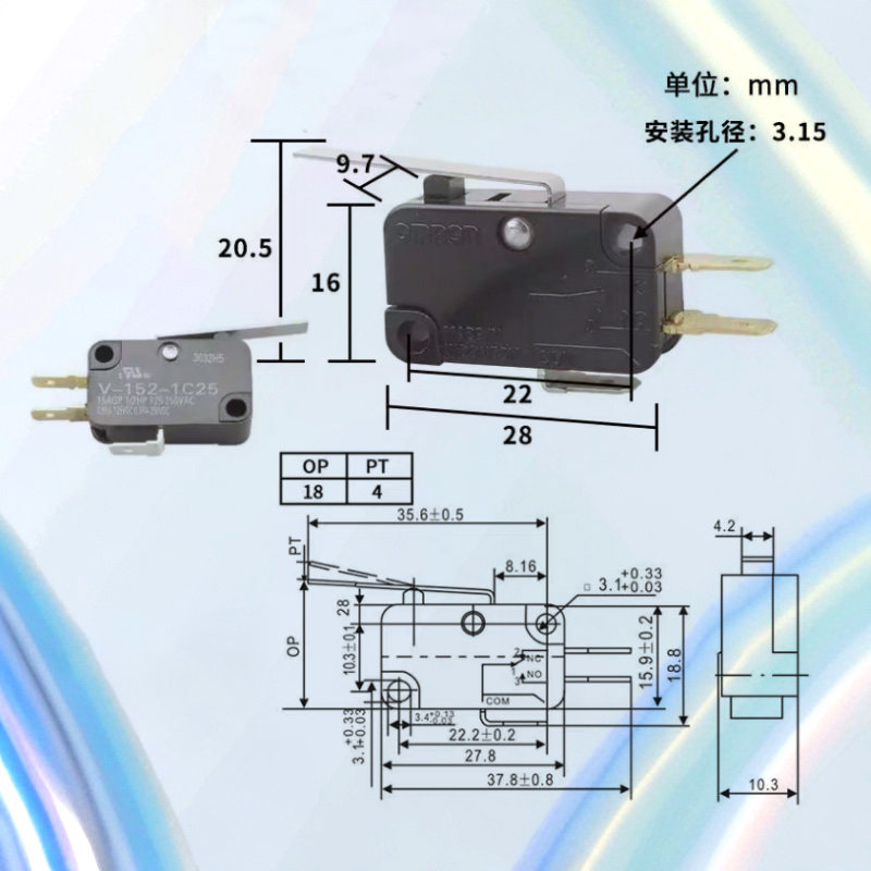 欧姆龙OMRON微动开关V-152-1C25 V-155-1C25 V-156-1A5 V-15-A-T