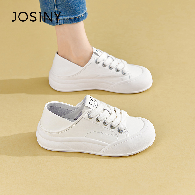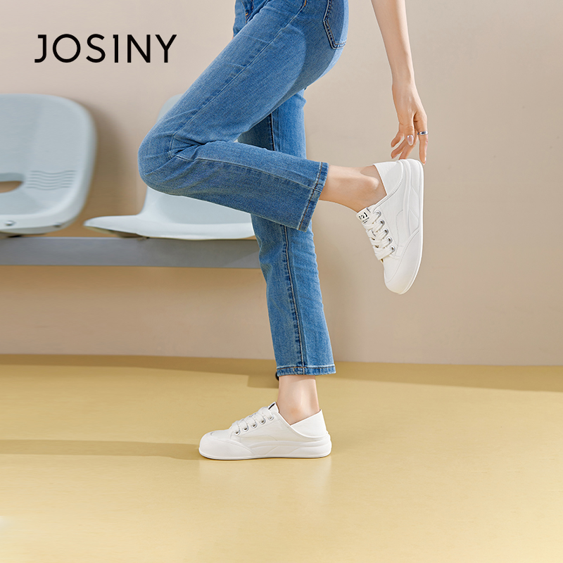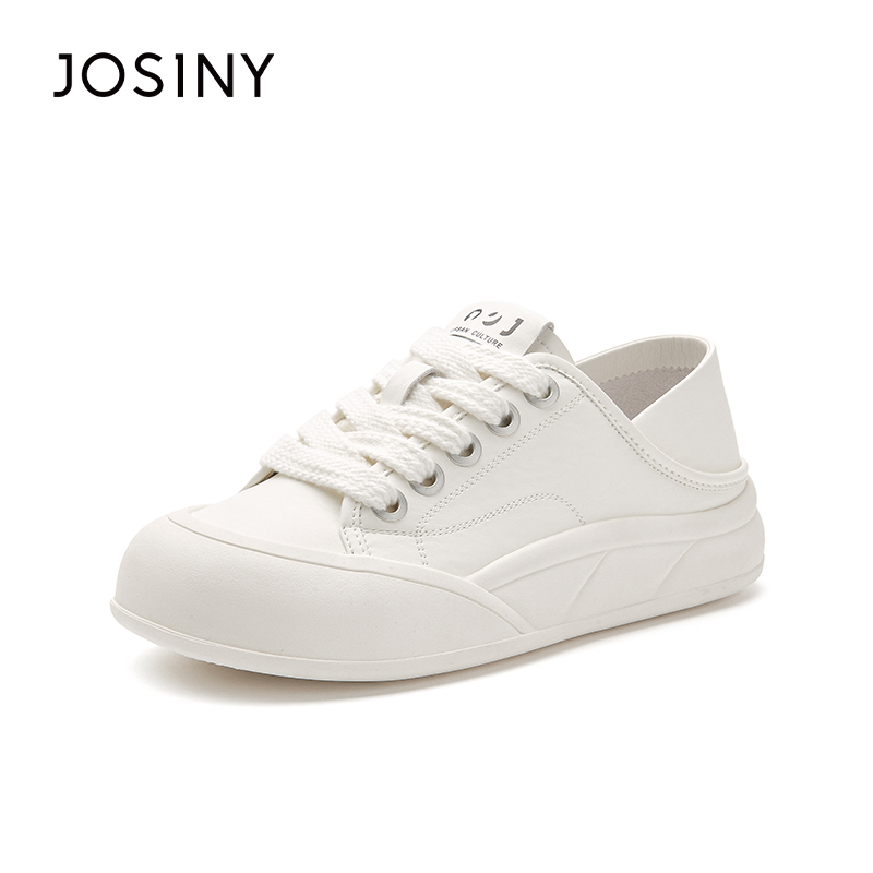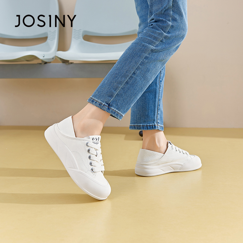 卓诗尼春秋季新款女士单鞋子圆头平底系带休闲百搭小白鞋板鞋舒适