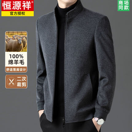 【100%绵羊毛】恒源祥新款加厚保暖中年男士外套羊毛呢子立领夹克