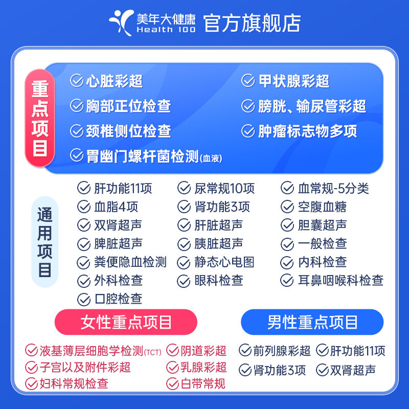 美年大健康旗舰店商务精英体检卡174TMMN00男性女士成人入职体检