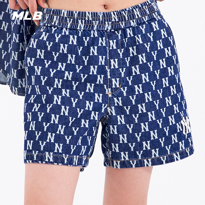 MLB官方 男女情侣牛仔短裤复古老花运动百搭休闲裤夏季DPM40