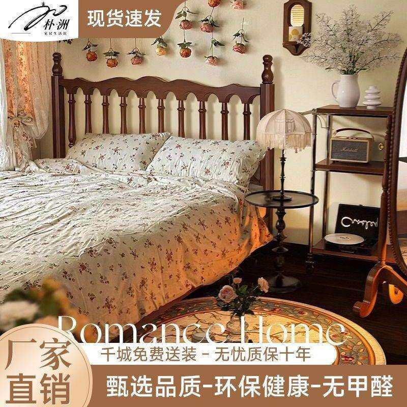 复古实木床复古风法式床现代简约双人床中古风田园风床温莎床主卧