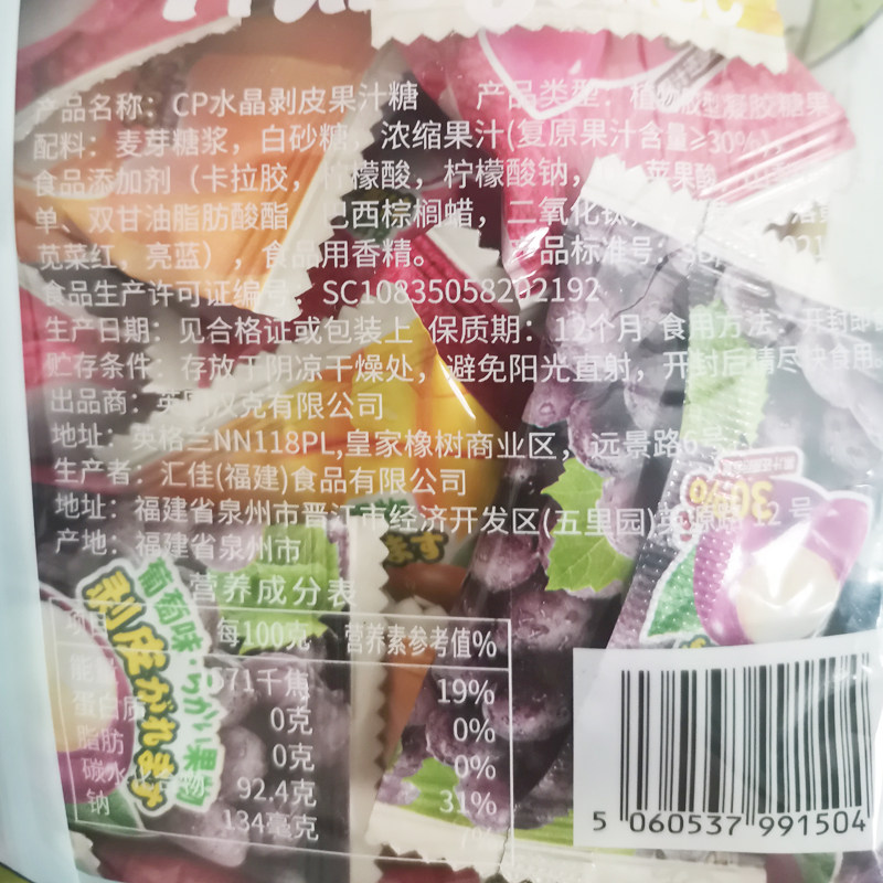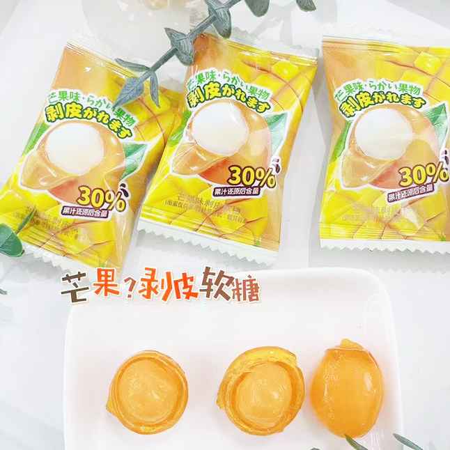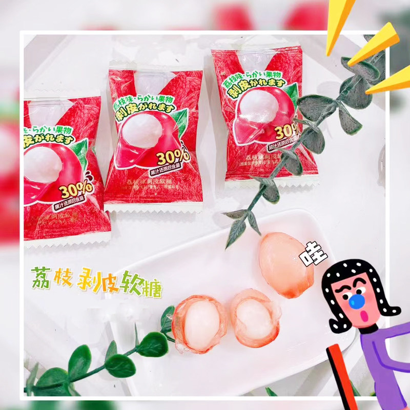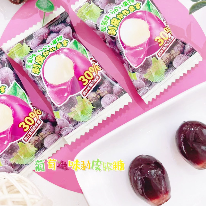 汇佳剥皮果汁软糖水果味酸甜糖果葡萄芒果荔枝夹心网红小零食