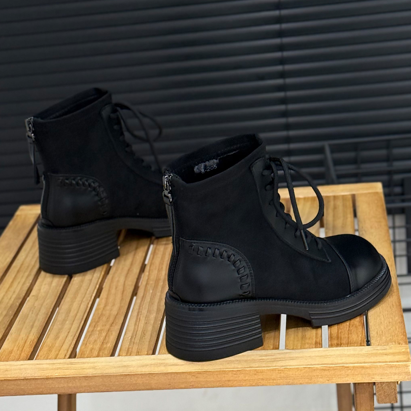 粗跟马丁靴女2025年秋冬新款工装靴弹力瘦瘦靴系带时尚短靴机车靴